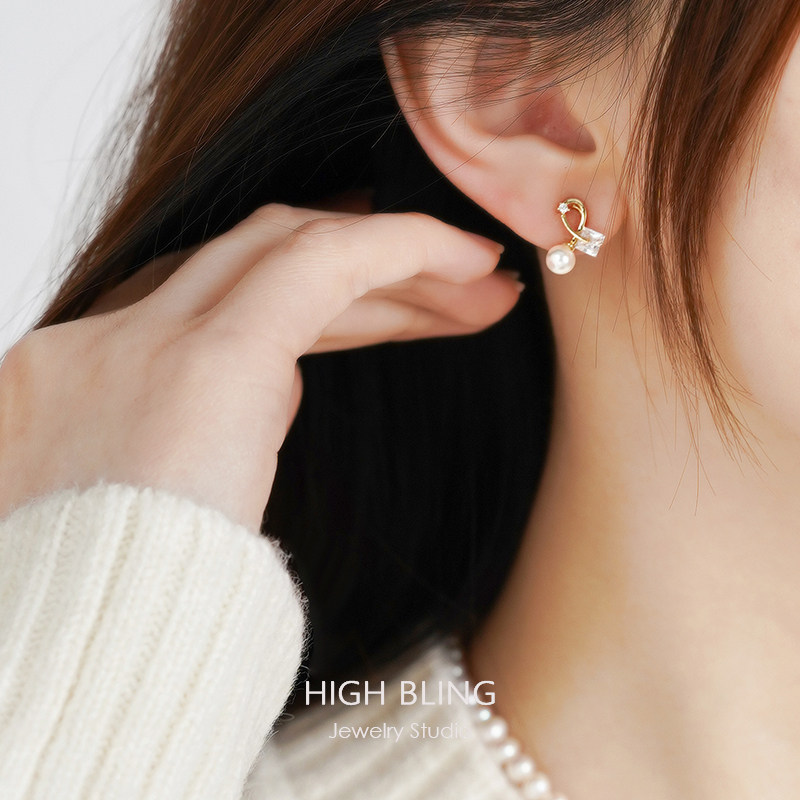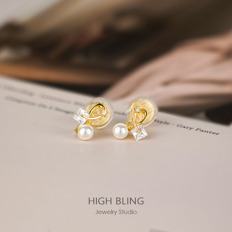 Advanced Wind Tea Ensemble Geometric Pearls Minimalist Temperament Earrings Without Earhole Women's Mosquito Coils Ear Clip No Pain Commute 100 lap
