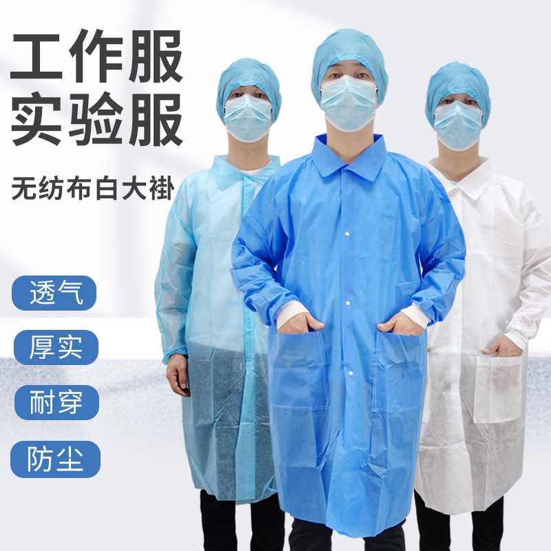 Disposable White Coat Workwear Unwoven Cloth Experimental Suit Thickened Isolation Suit Tour Clothes Catering Dispensary With Pocket