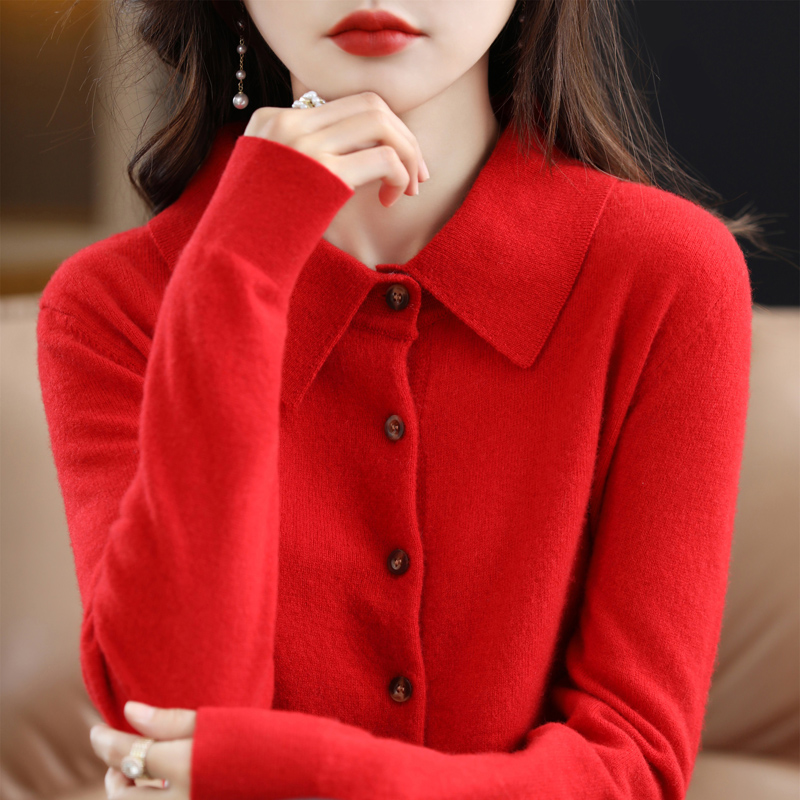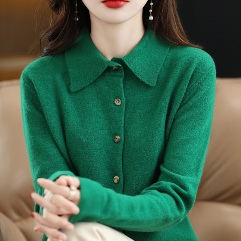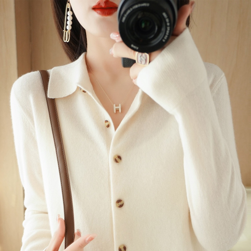 Outerwear non-cashmere shirt female POLO collar knitted cardigan temperament lapel sweater coat long-sleeved bottoming autumn and winter