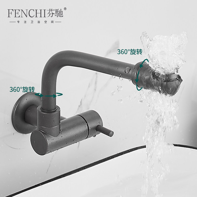 Gun Grey Mop Pool Tap Full Copper Rotatable Balcony Laundry Pool Faucet Lengthened Splash Splash Water Outlet
