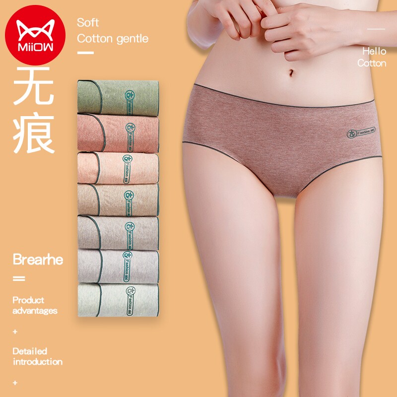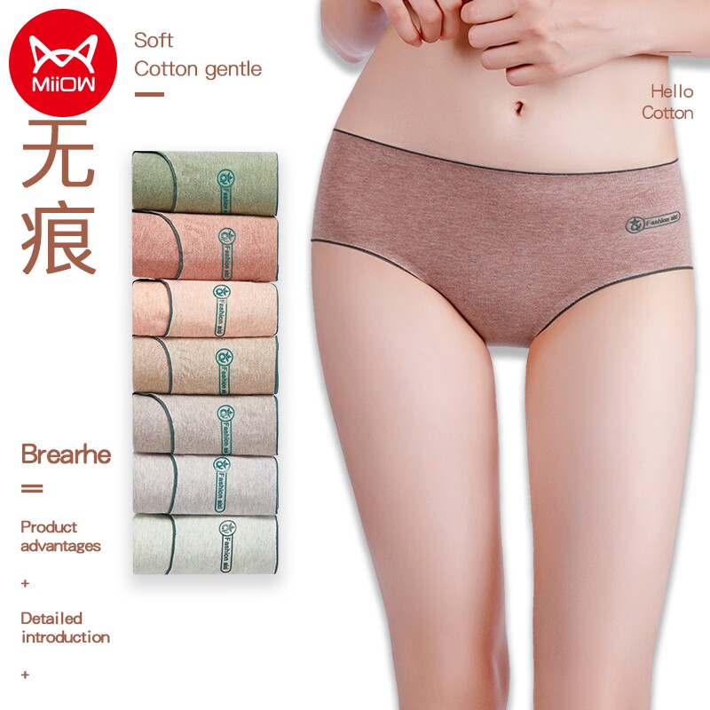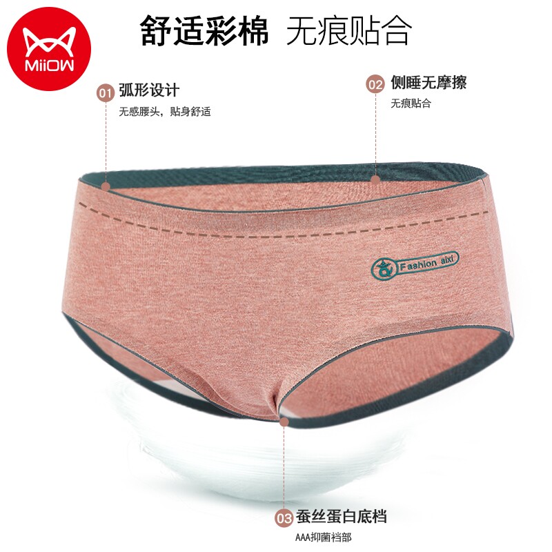 Cat people underwear women's pure cotton silk bottom soft and comfortable girls underwear solid color close-fitting seamless medium tube triangle shorts