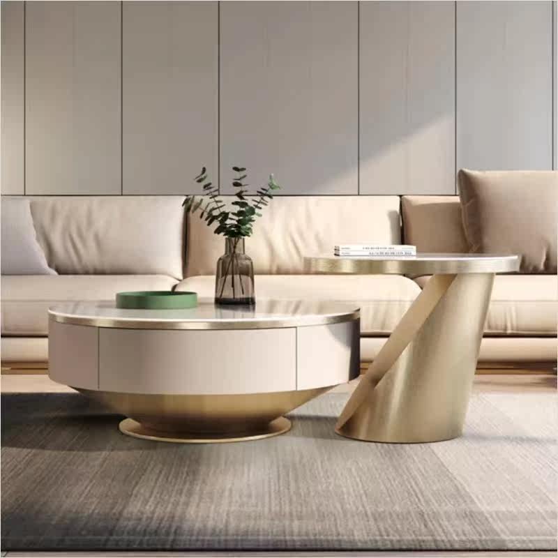 Italian light luxury rock slab tea table TV cabinet combination modern minimalist living room small apartment designer high-end floor cabinet