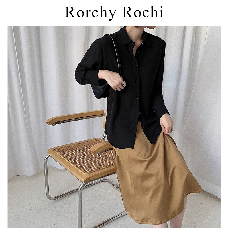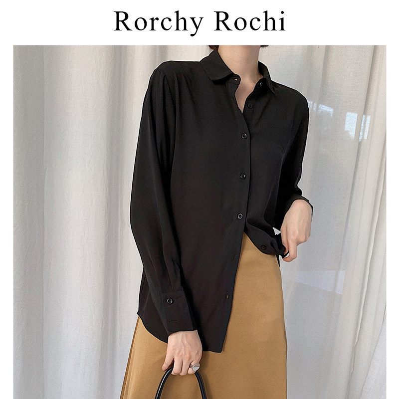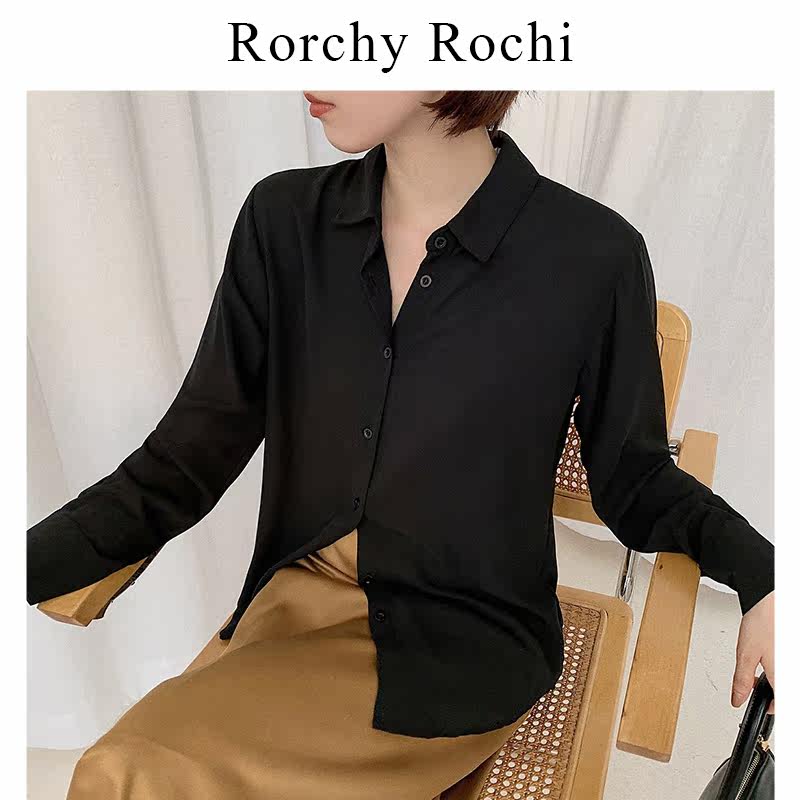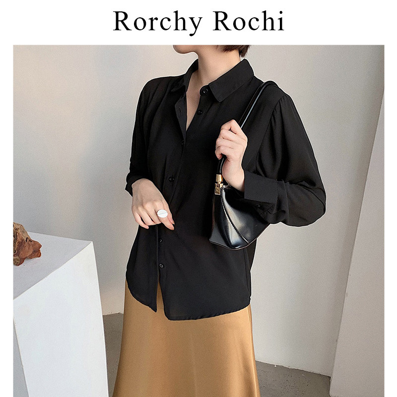 Japanese black shirt women's 2022 spring and autumn new chiffon loose shirt professional long-sleeved all-match top trend