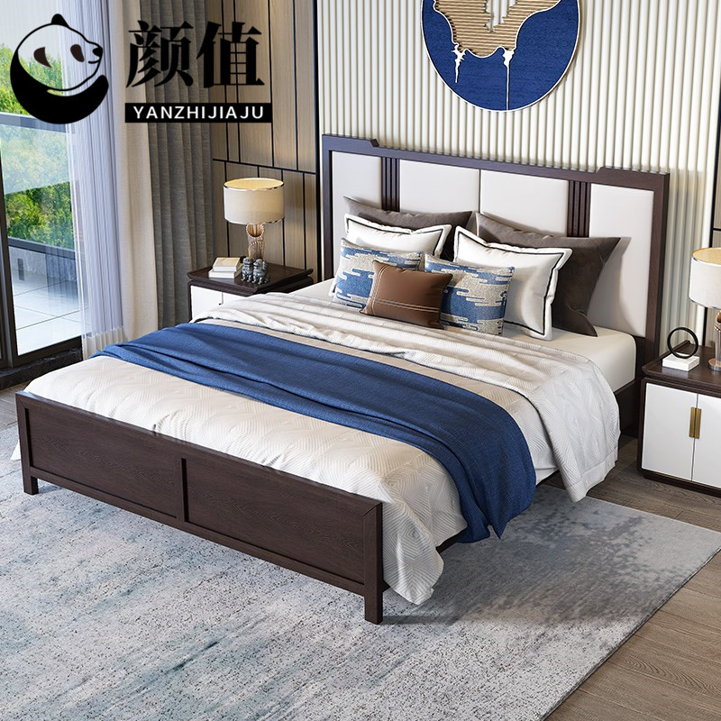 New Chinese style solid wood bed 1 8m double bed modern minimalist Zen Chinese wedding bed 1 5 bed master bedroom furniture customization