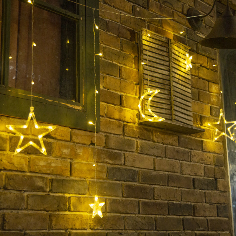 Solar outdoor lighting atmosphere with retro courtyard starmoon bright lights outdoor waterproof waterfall lamp string