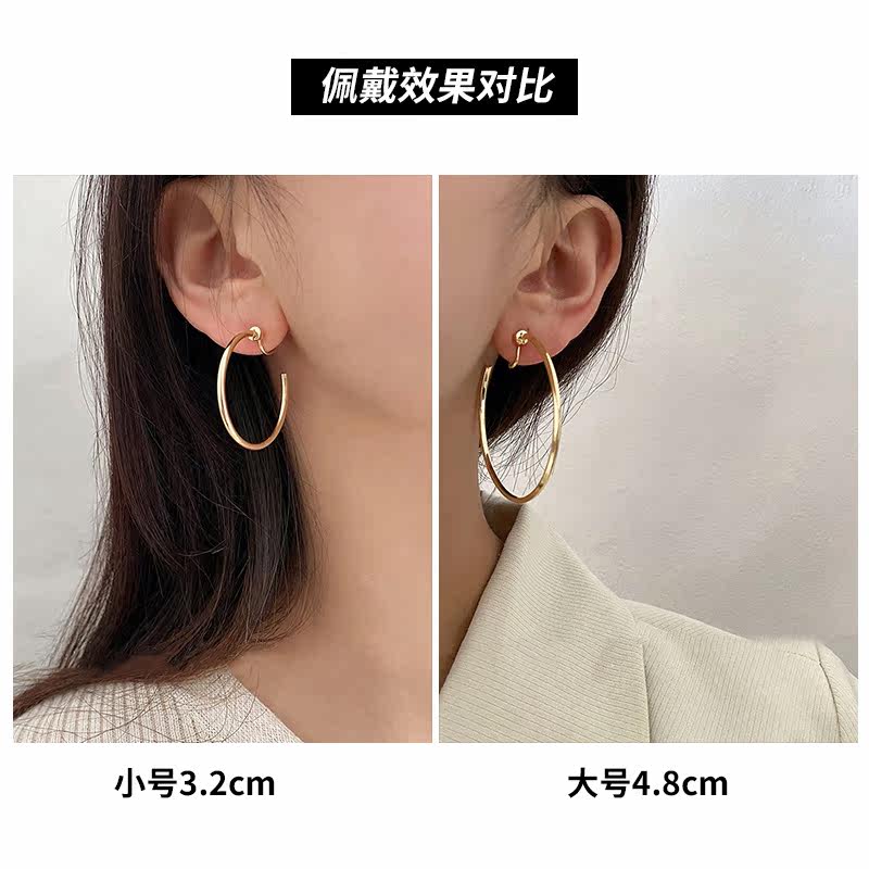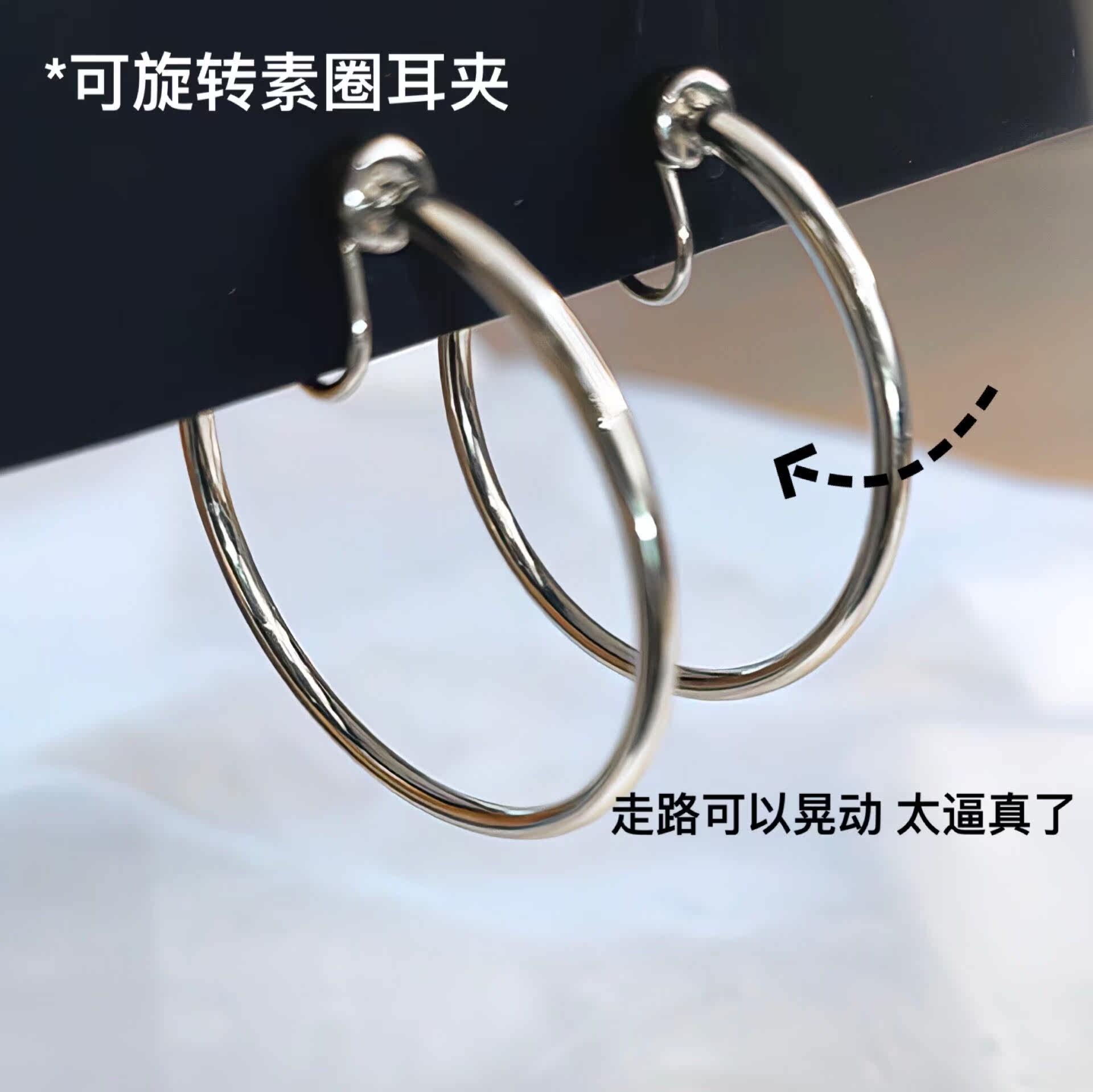 Rotatable circle Hong Kong style exaggerated no ear piercing ear clip female mosquito coil plate metal high-end sense simple big ring earrings