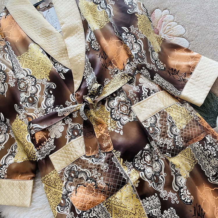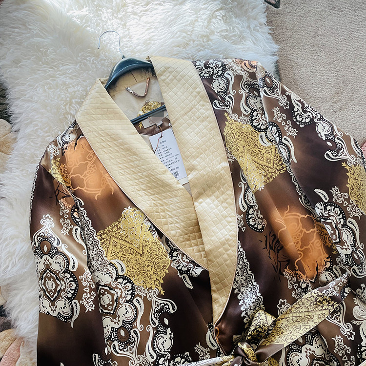 Inner-Outer Mulberry Silk Gown Real Silk Men Sleeping Clothes Spring Summer Silk Long Version Pyjamas Women's Morning Robe Crepe Satin Burqa