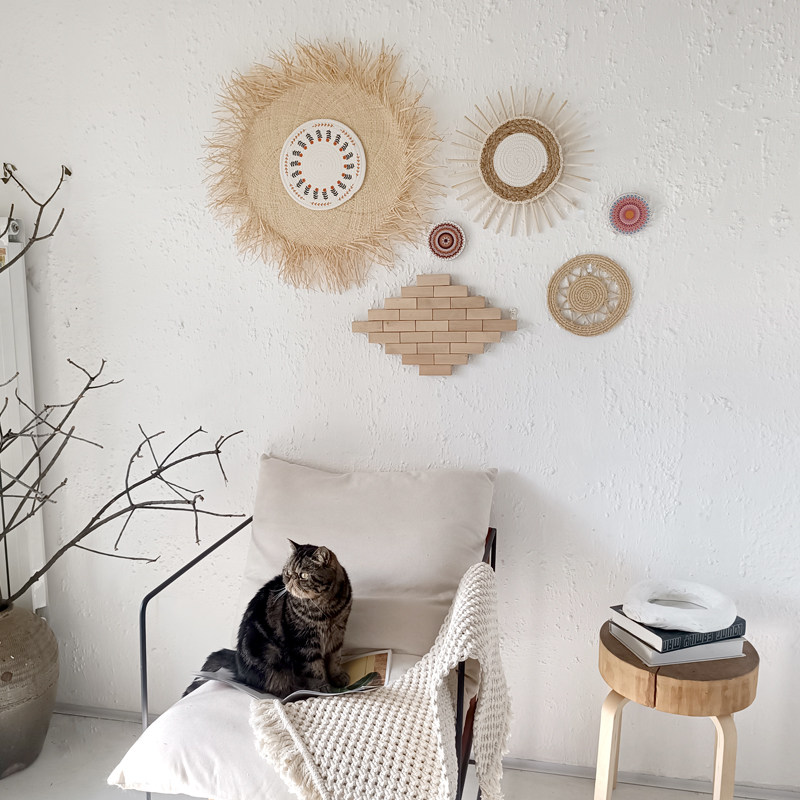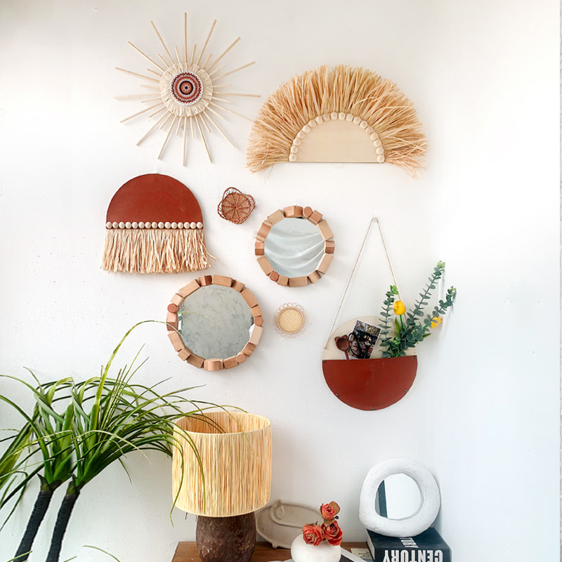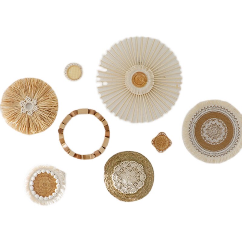 Wall decoration set collection round log straw rattan hemp rope bohemian living room background wall hanging accessories