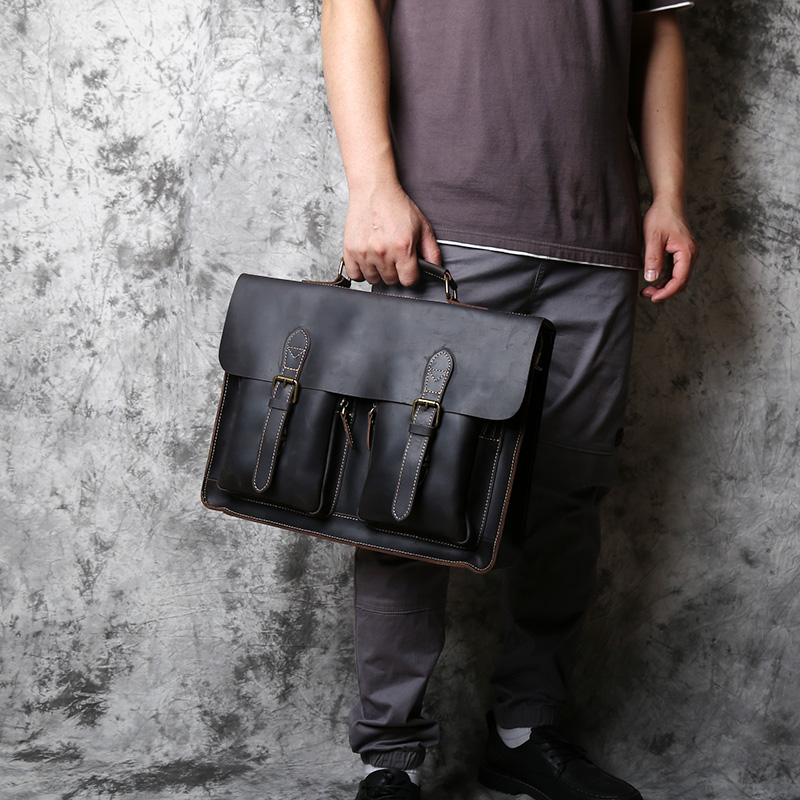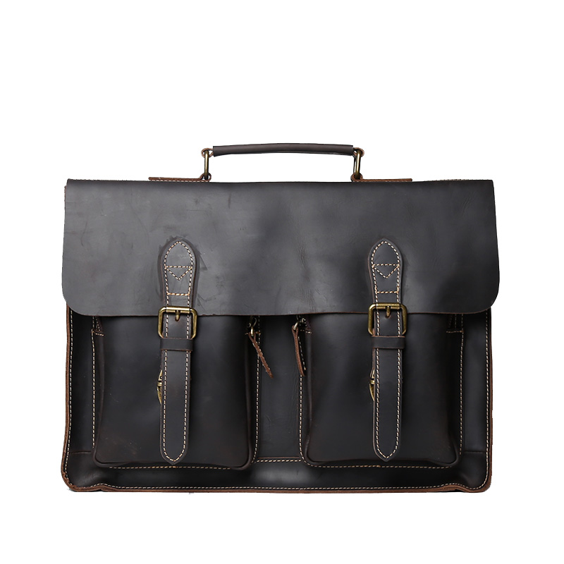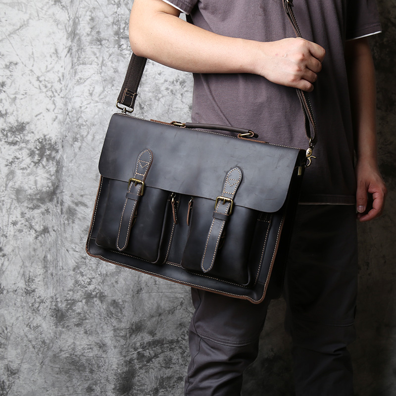 Retro Crazy Horse Leather Men's Handbag First Layer Leather Horizontal Computer Briefcase Casual Leather One-shoulder Crossbody Bag