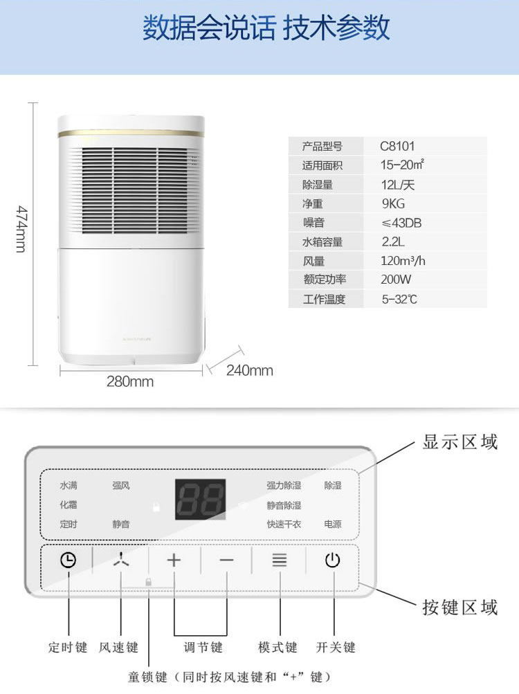 Yadu dehumidifier C8101BGW dehumidifier household dehumidifier basement drying dehumidifier