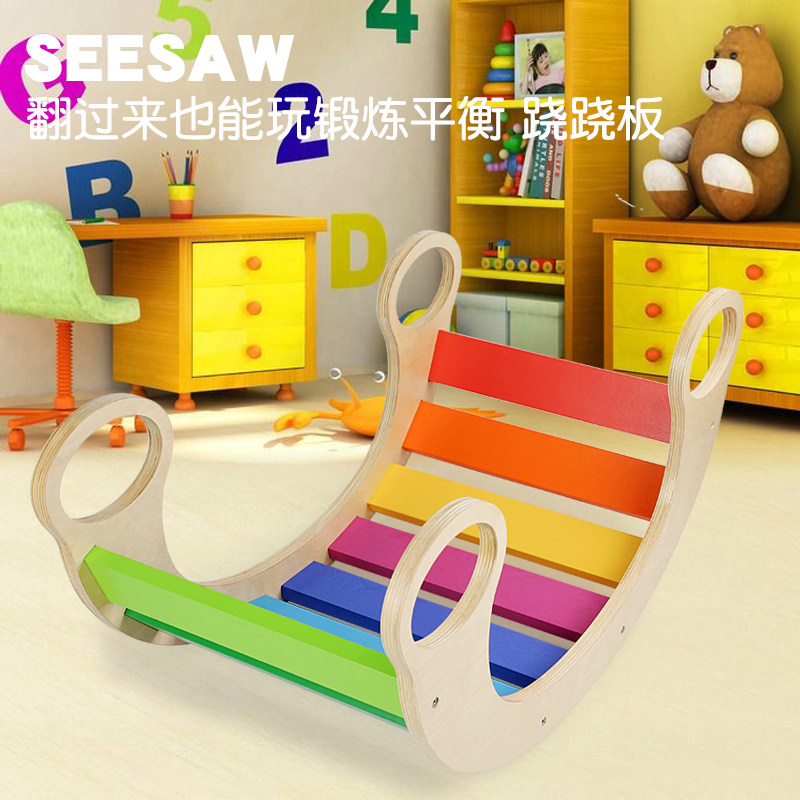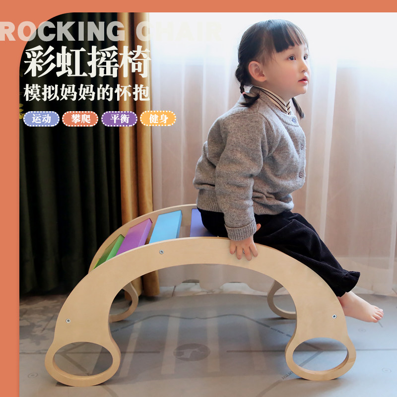 Wooden children's multi-functional rainbow rocking chair climbing interactive can train kindergarten early education puzzle toys