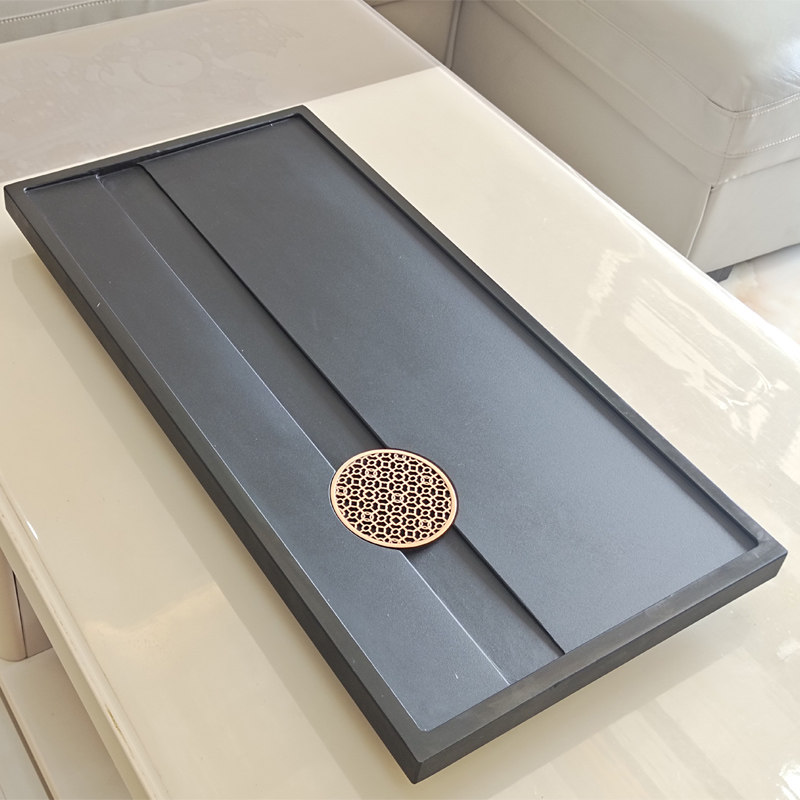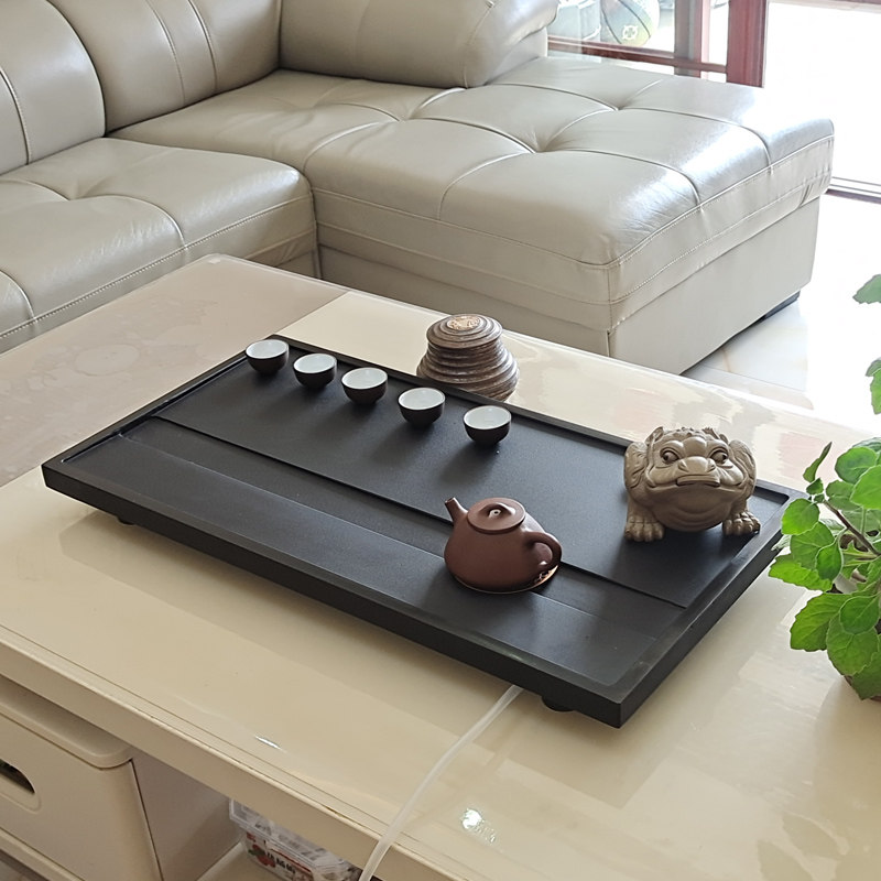Whole piece of black stone tea tray natural modern minimalist household single-layer stone tea set tray size high-end tea table