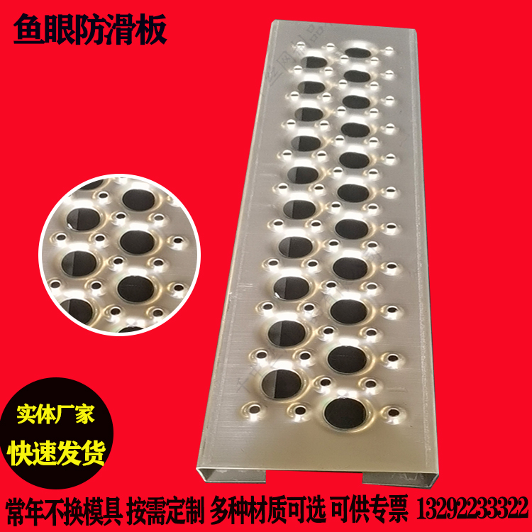 Fish eye drum anti-skid plate crocodile mouth stainless steel punching anti-skid plate galvanized iron plate stair pedal protection plate