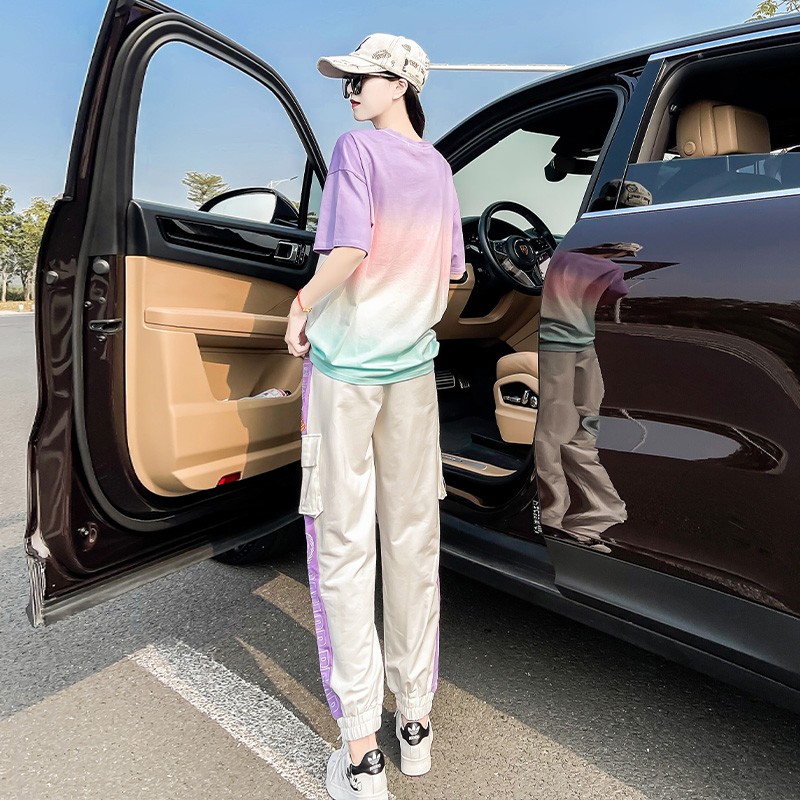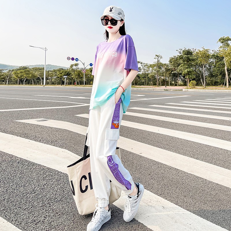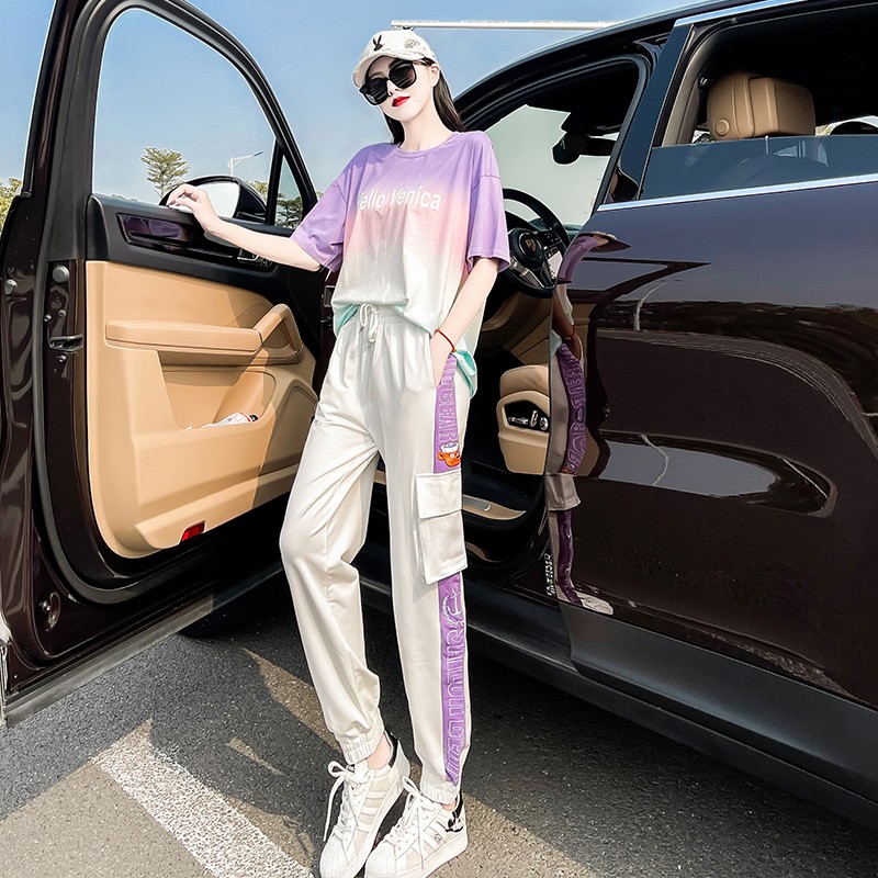 Sports Casual Suit Women Summer 2022 Gradual Layer Han Edition Loose short sleeves Aging Foreign Pie running suit Fashion Two sets
