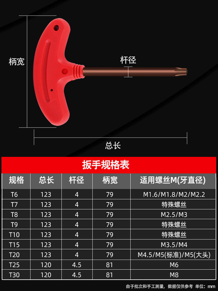 warlak high strength T type wrench numerical control knife disc knife lever screwdriver blade red flag T8T10T15T20T25T30