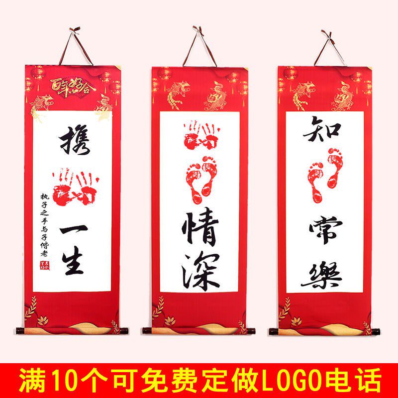 Hand in hand with a lifetime of contentment, often happy, brotherly love, handprint painting, hanging scroll scroll painting, gold and silver jewelry, wedding, wedding gift