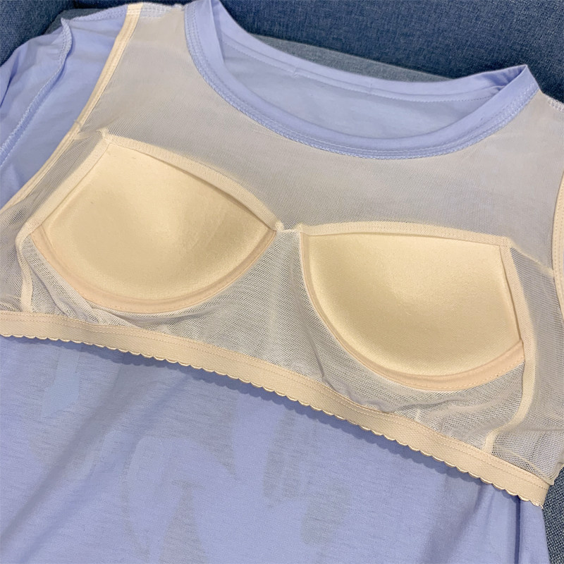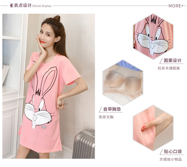 Nightdress women's summer style with chest pad one-piece wear-free bra 2022 new cotton short-sleeved cute maternity pajamas