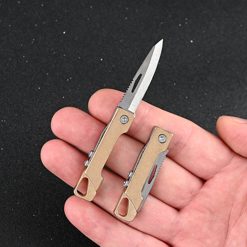 Brass Mini Folding Knife Portable Unpacking Express Sharp Knife Keychain Small Pendant Portable Pocket Unboxing Knife