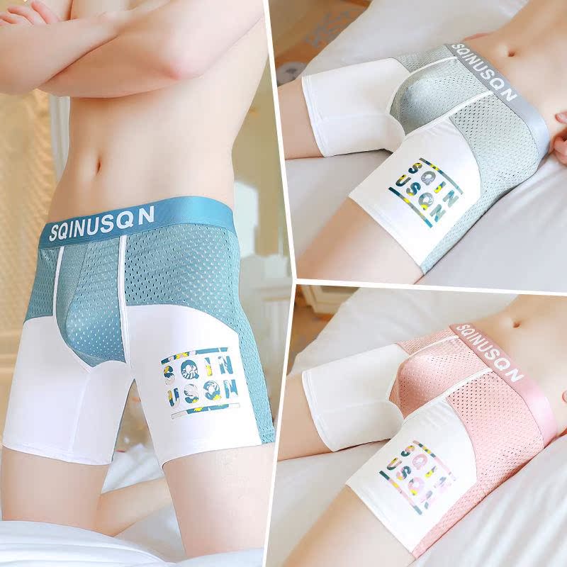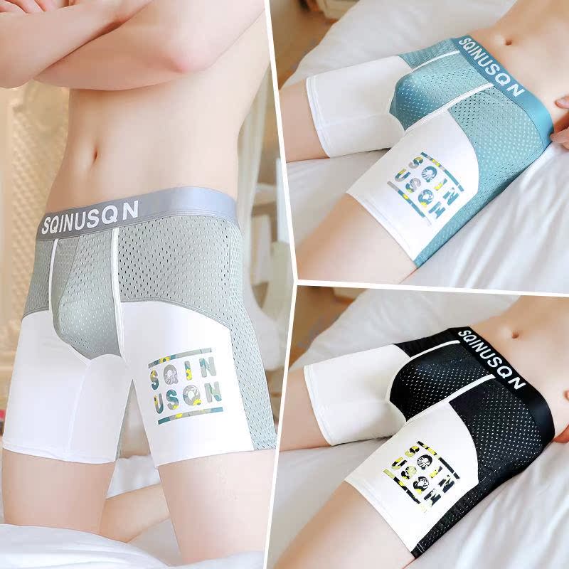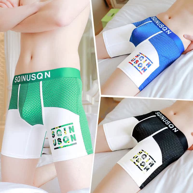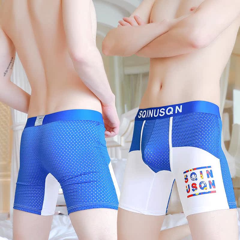 Summer ice silk mesh long-legged pants men's underwear youth sports breathable hollowed out lengthened boxer pants trendy men's trousers