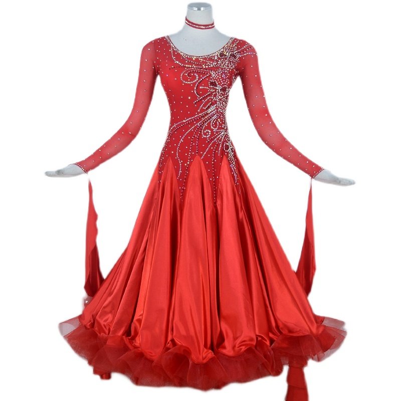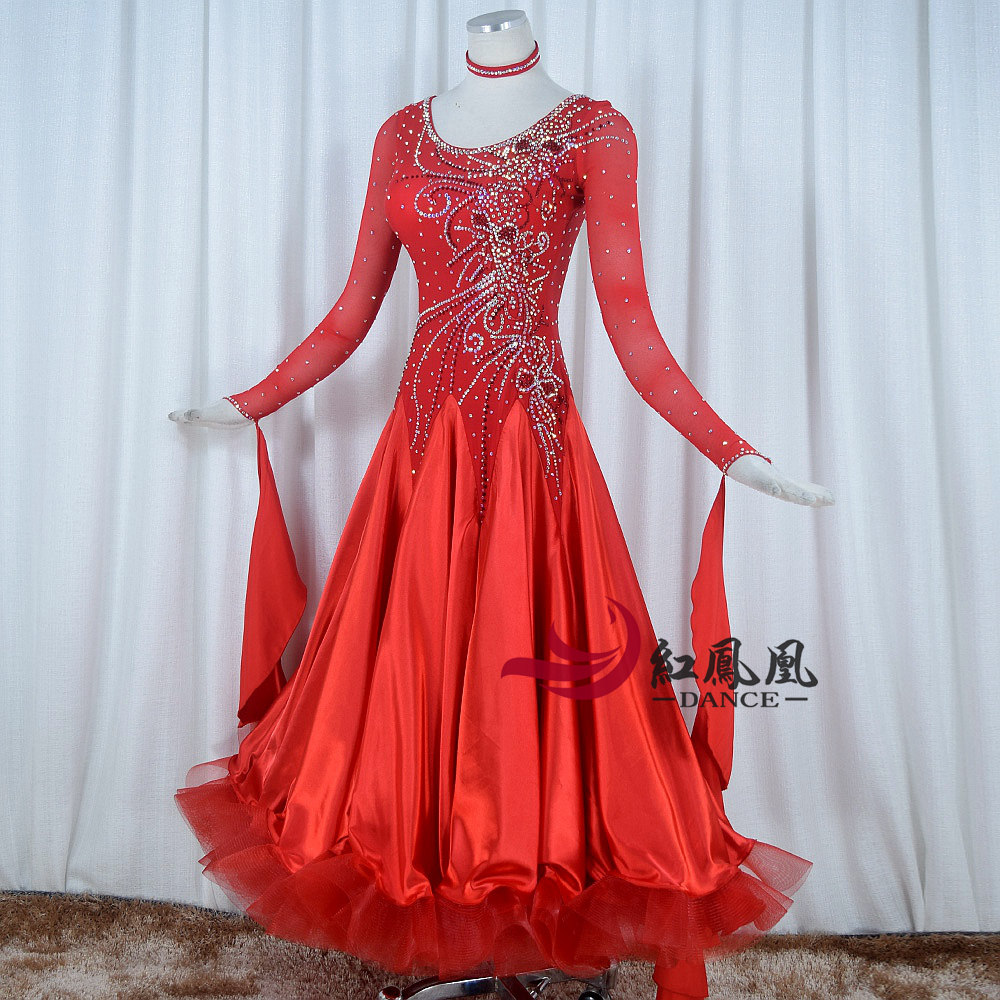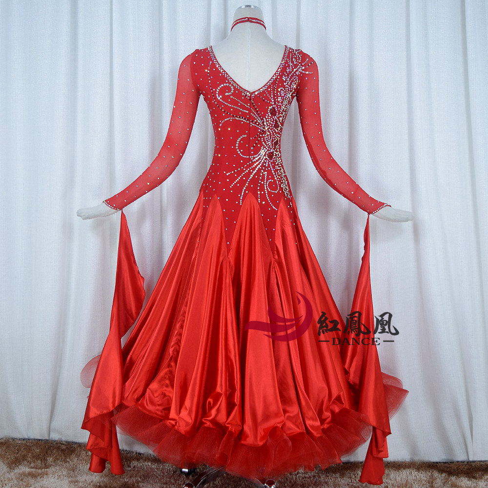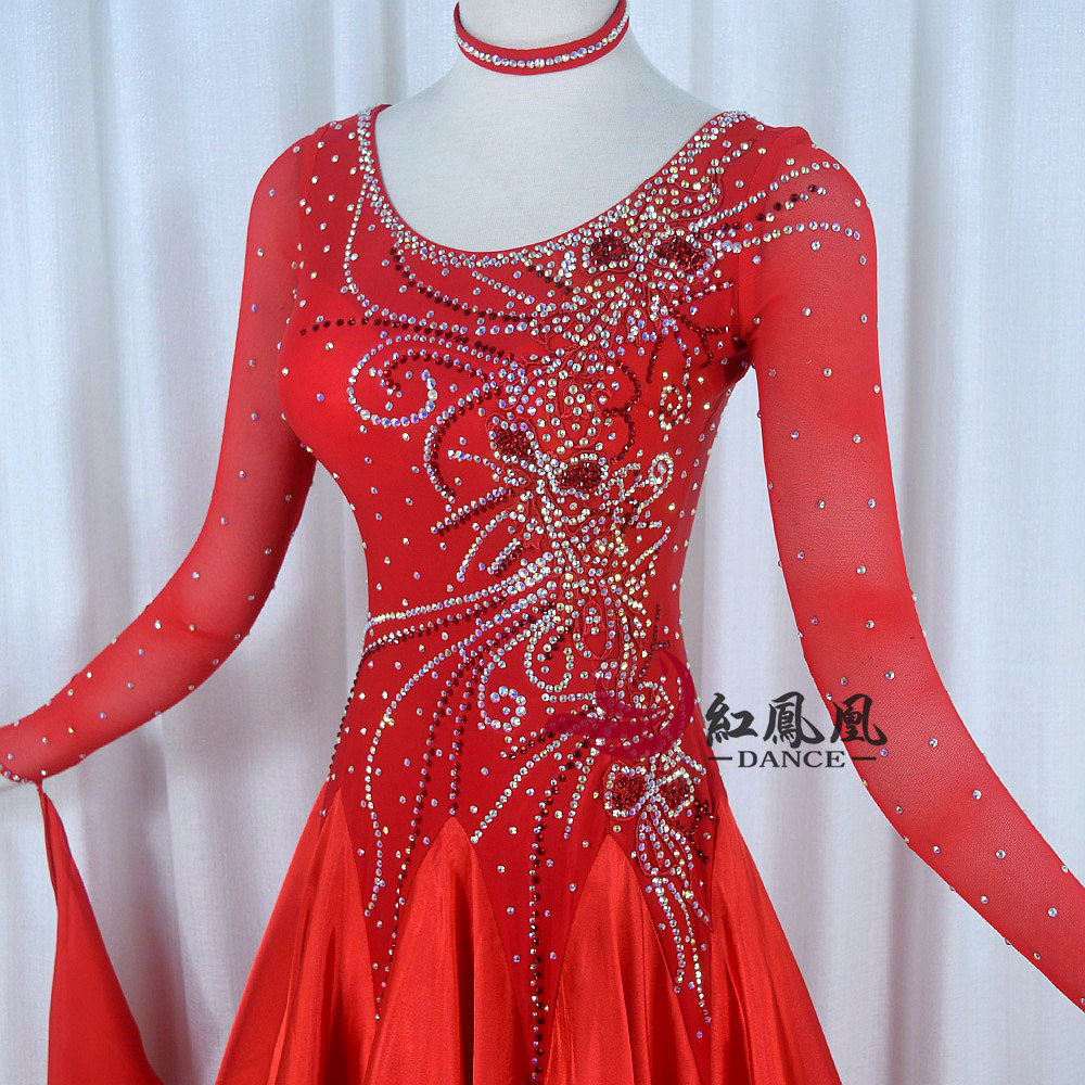 Red Phoenix Custom Wine Red Morden Dance Competition Dress Grand Swing Waltz Tango Fox Walk Performance Out 1004