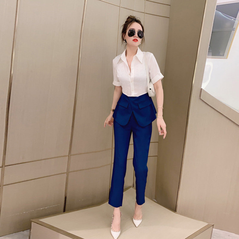 Special price 249 high-end salt-style fried street spring and autumn suit women's design shirt stitching suit jacket micro flared pants