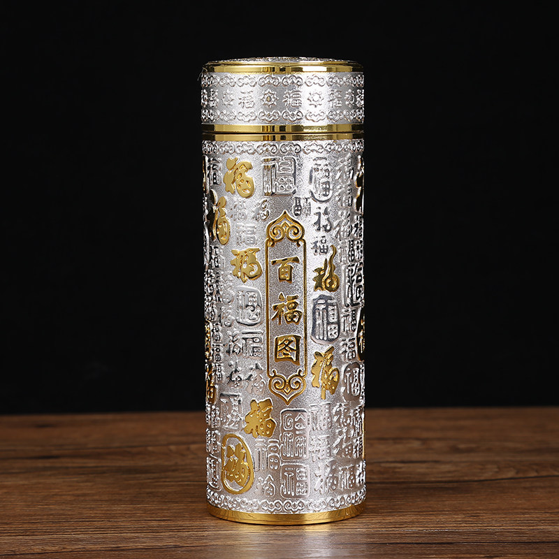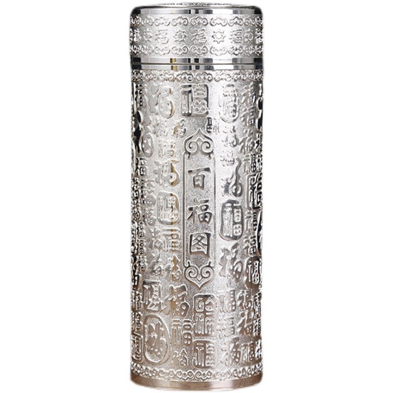 Baifu cup Fu word vacuum plating liner craft insulation cup Kowloon embossed water cup silver cup gift tea gift