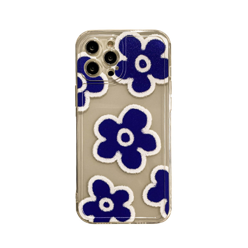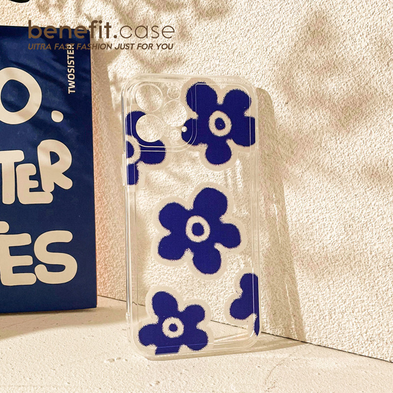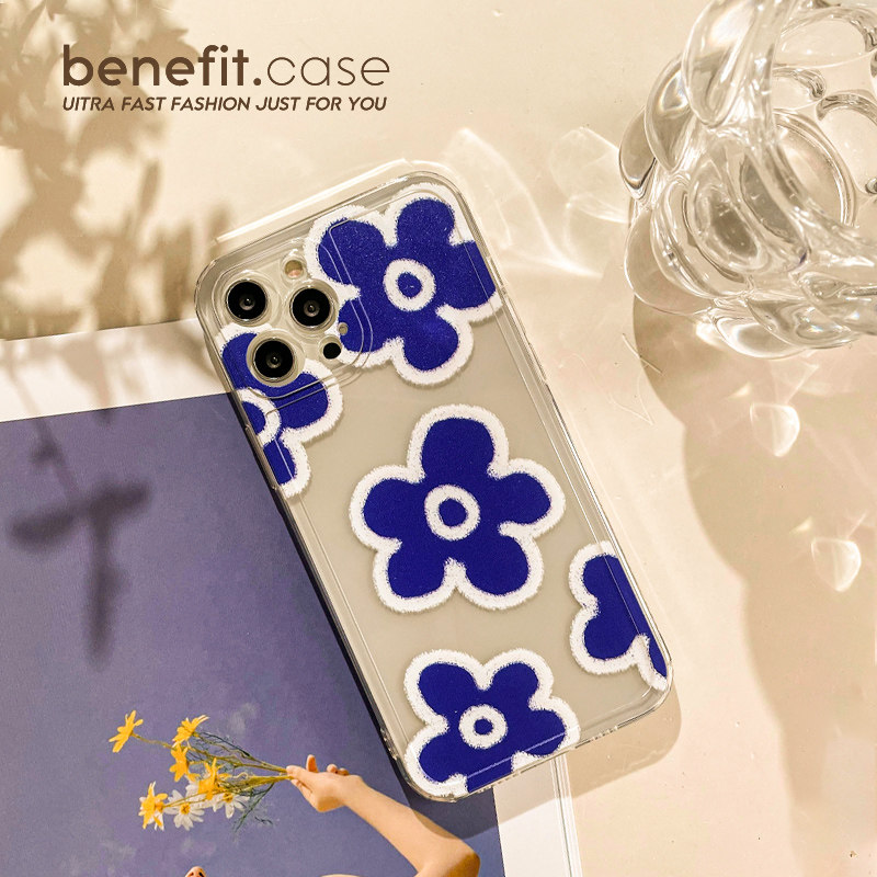 Benefit Japan-ROK ins Klein blue flowers apply Apple 13promax mobile phone protection shell iphone12 transparent mini oil painting xsmax art