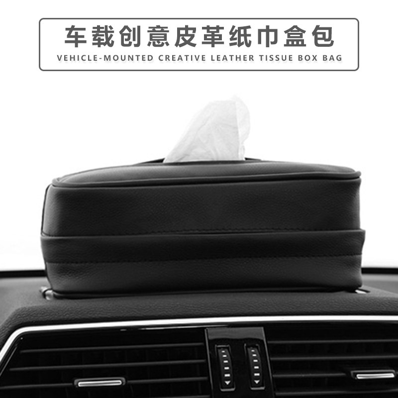 On-board Tissue Box Leather PU Car Creative Hanging Sanitary Paper Box Removable Sanitary Paper Bag Multifunction Car Hanging Tissue Bag