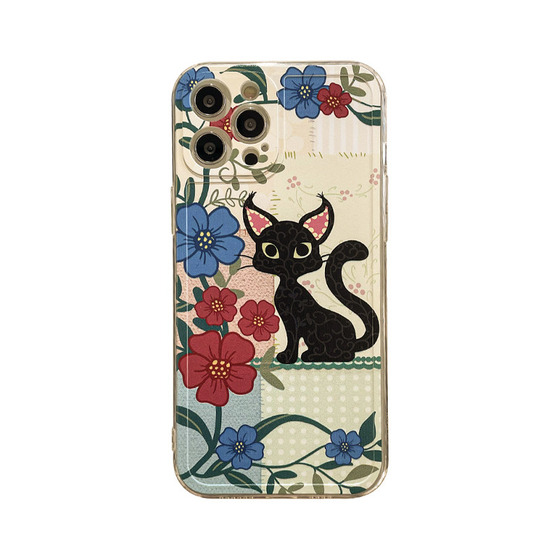 Benefit Japan-ROK Wind Fields Garden Kittens Apply Apple 13promax Mobile Phone Protection Shell iphone12 Transparent Mini Silicone Xsmax Splicing Xr Flowers