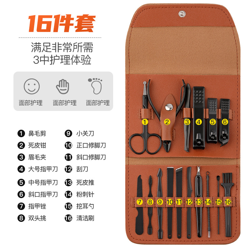 Grey nail pliers trim nose hair scissors dig ear spoons suit complete with professional pedicure advanced tool portable stainless steel