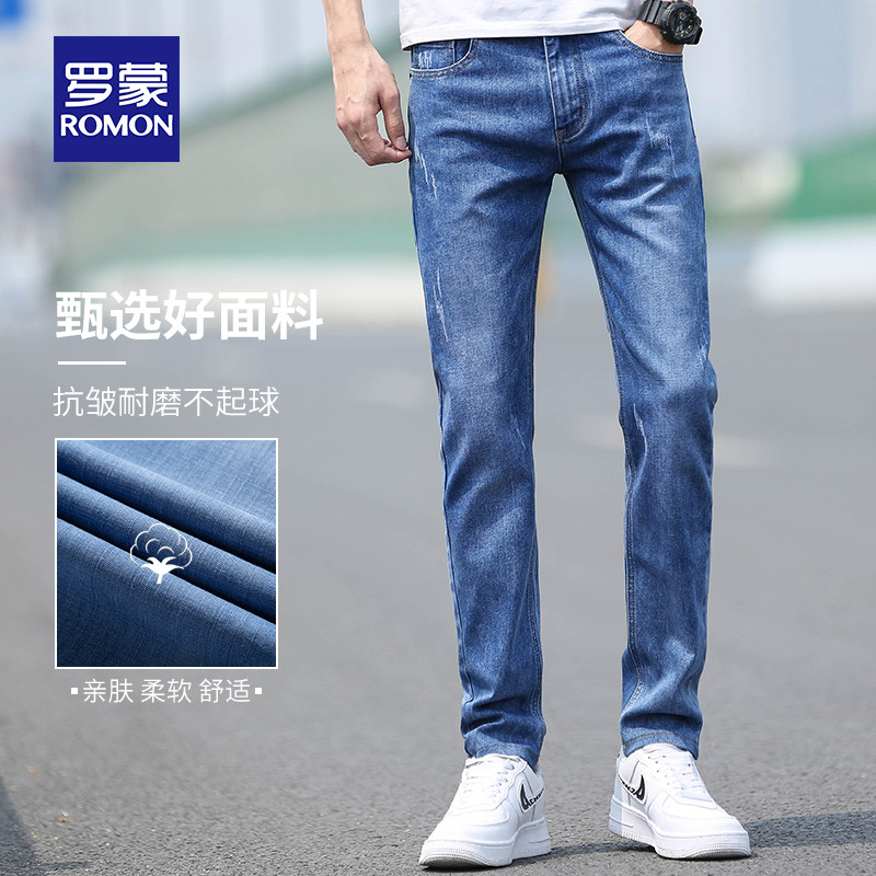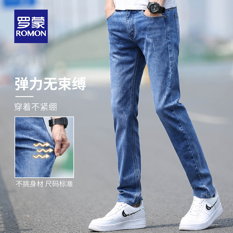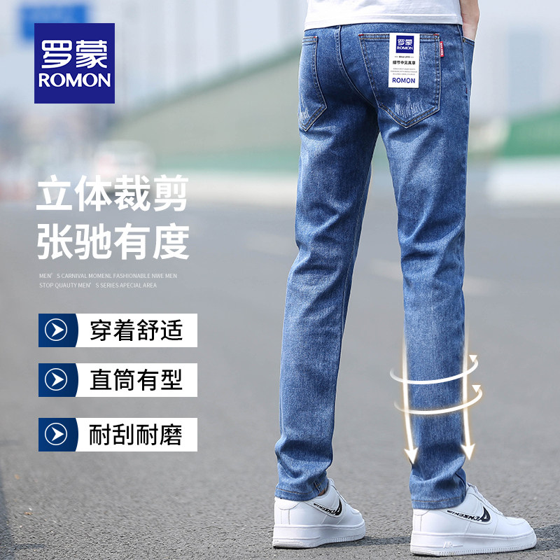 Romon 2022 new spring summer jeans Men's loose straight drum Chauded elastic body 100 lap casual long pants