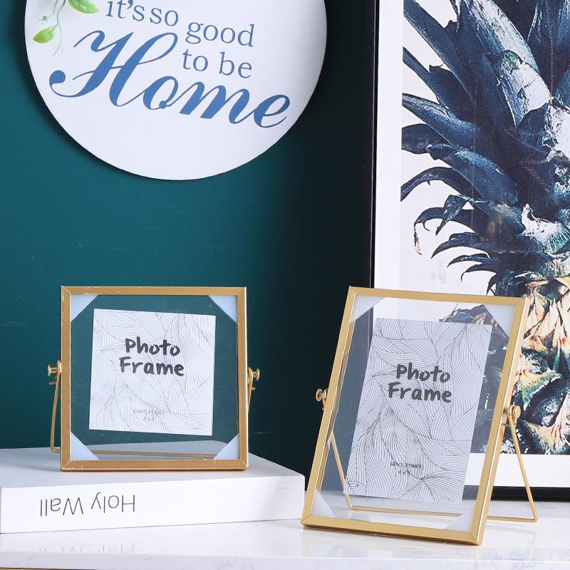 Wholesale Nordic minimal iron frame with glass gold frame 6 inch plant specimen creative cross border