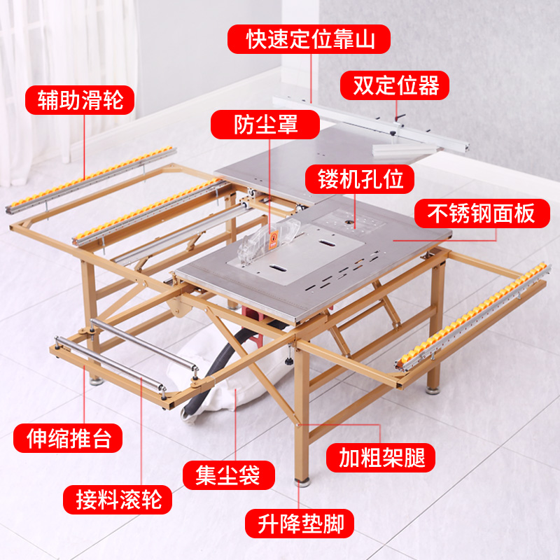 Woodworking table saw multifunction All dust-free primary-secondary saw bench precision rail push table saw folding saw table