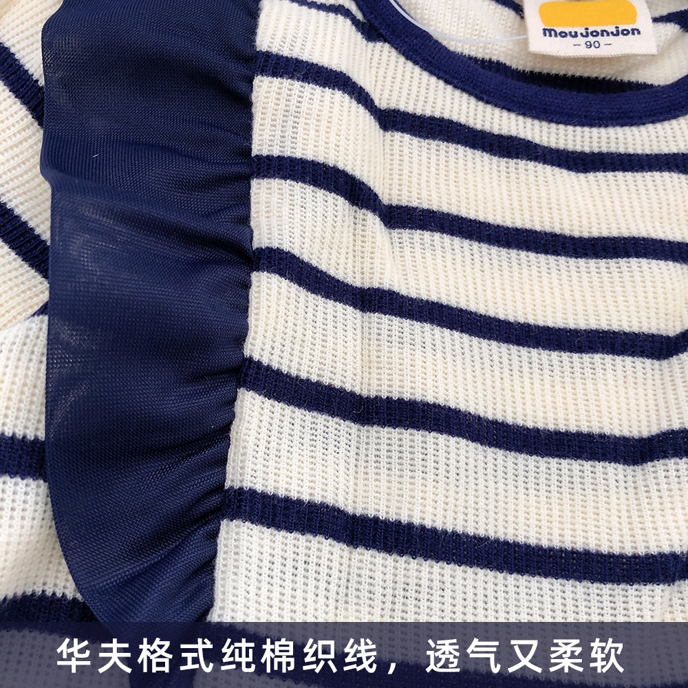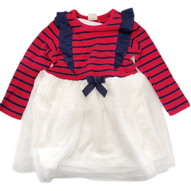 Export Foreign Trade Girls Spring Summer Long Sleeves Slim Fit Dress Dress Fluffy Skirt Striped Butterfly Knot
