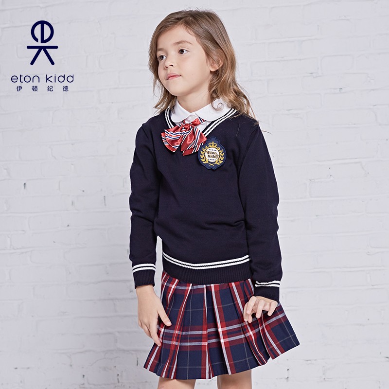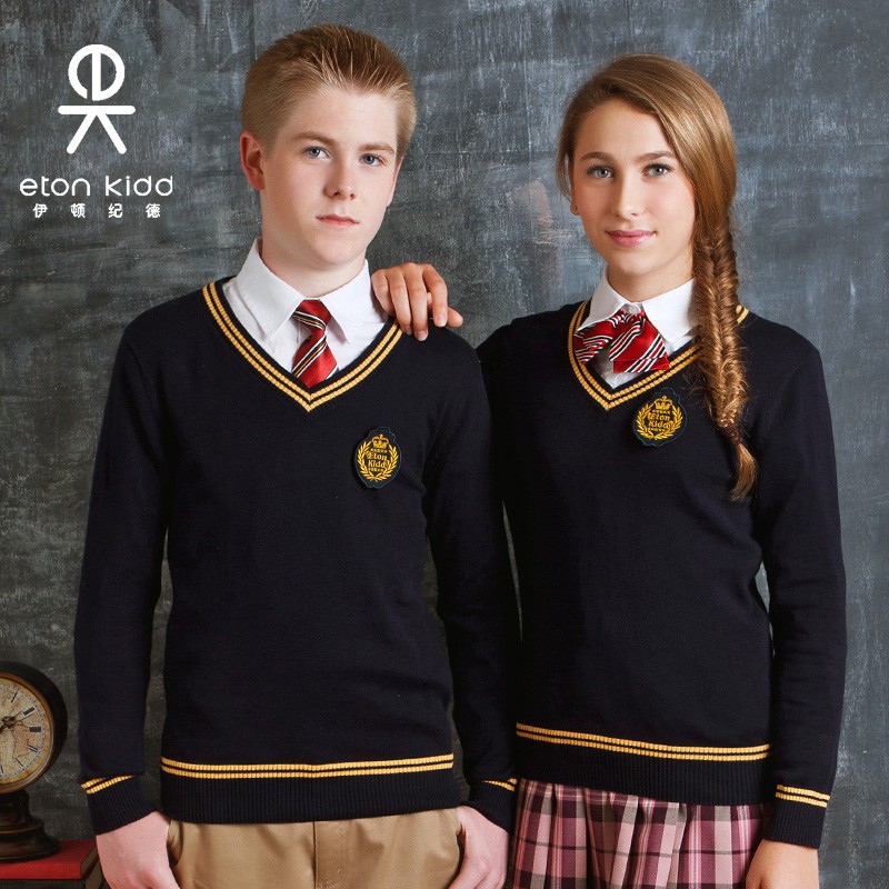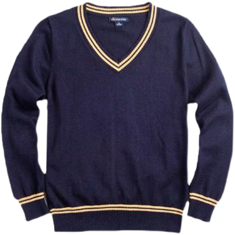 Eaton Gide knitted sweater navy blue and yellow edge V-neck sweater boys and girls bottoming pullover school uniform 09m101