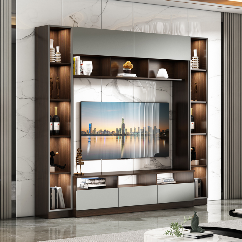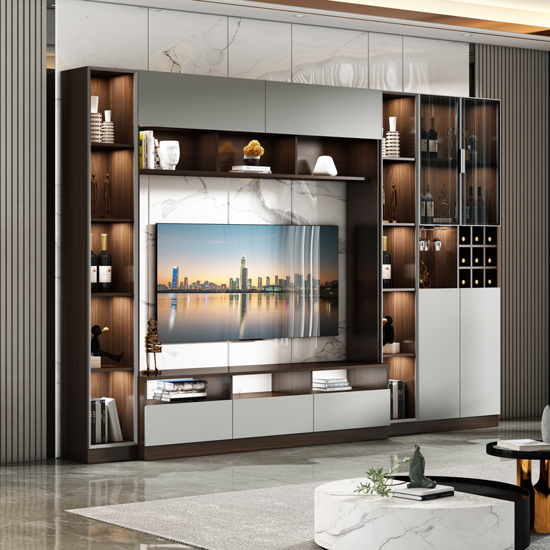 Light luxury combination 65-inch TV cabinet wine cabinet overall TV wall cabinet solid wood background wall integrated cabinet modern simplicity