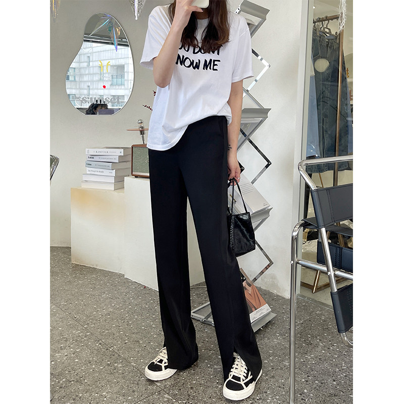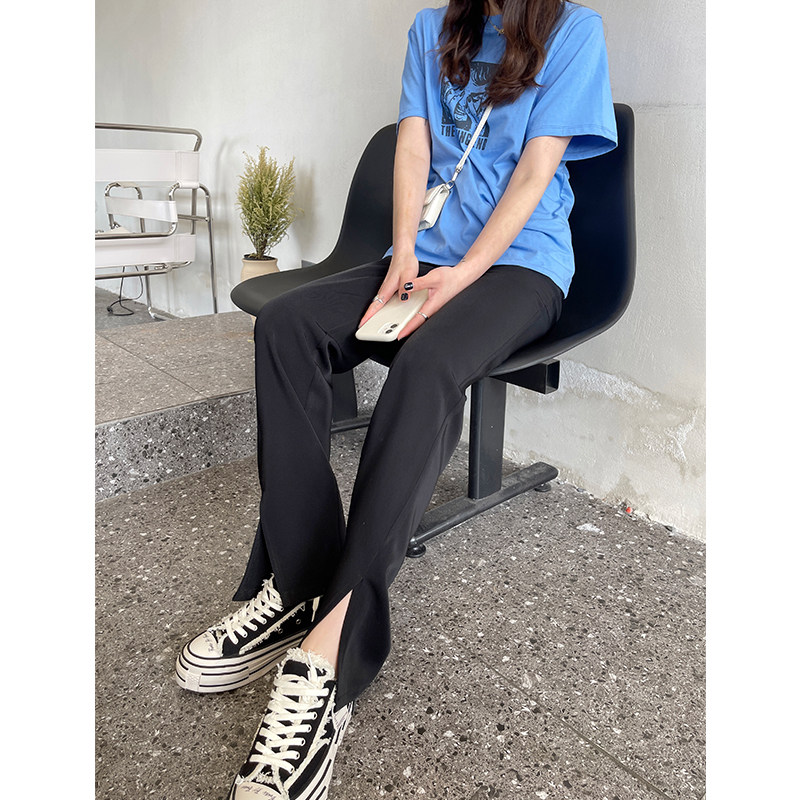 Open Fork Micro Horn Pants Woman 2022 Spring High Waist Loose With Slim Suit Tugging Long Pants Casual Straight Barrel Broadlegged Pants