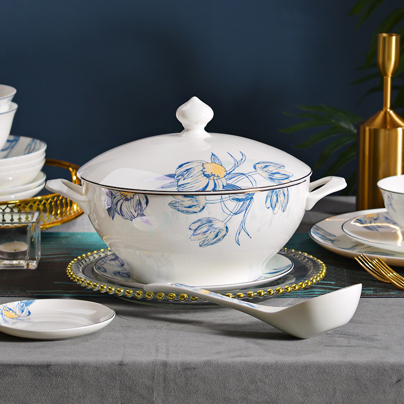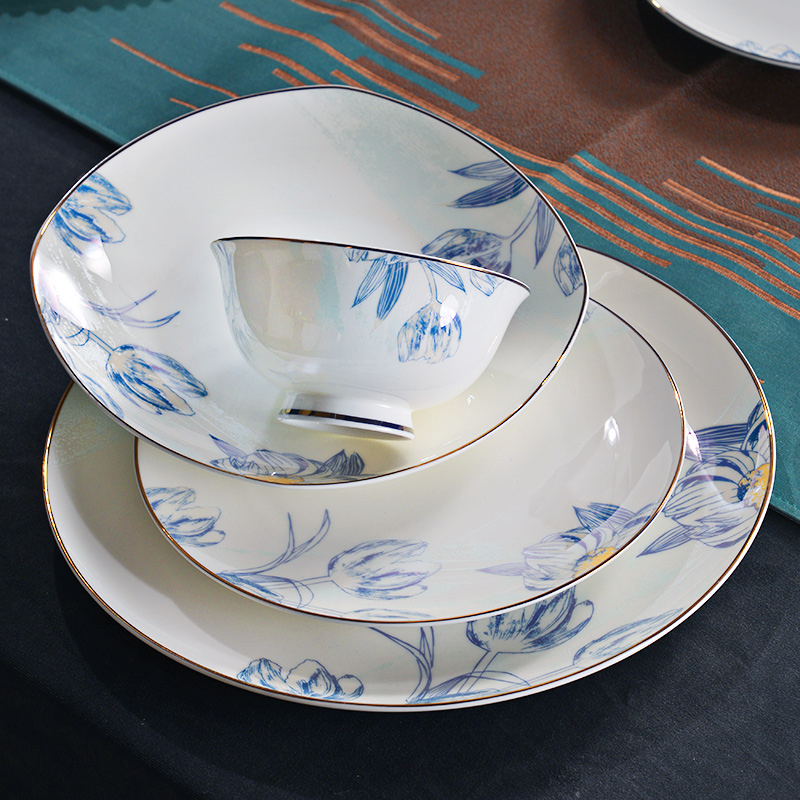 Bowl Dish Suit Home Light Lavish Nordic Wind Bony Porcelain Cutlery Sets High Face Value Bowls Tray Chopsticks Combined Modern Brief