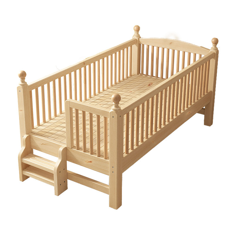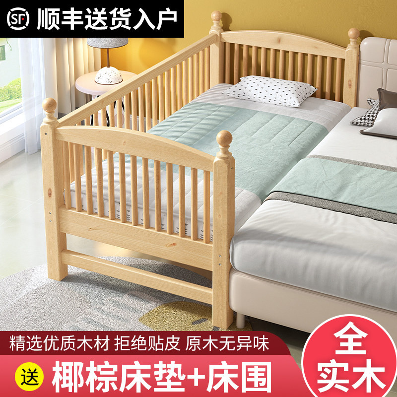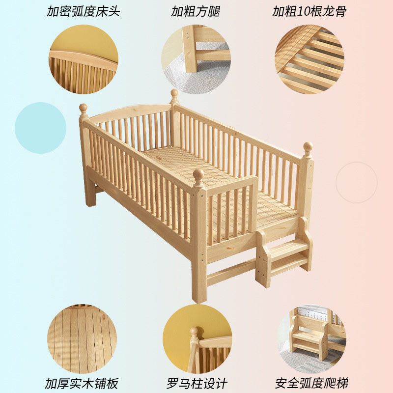 Full solid wood children splicing bed boy girl crib customizable economy type with guardrail large bed widening diviner