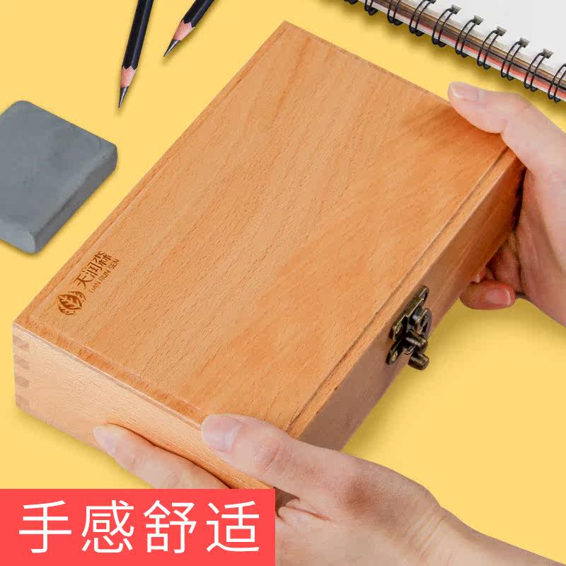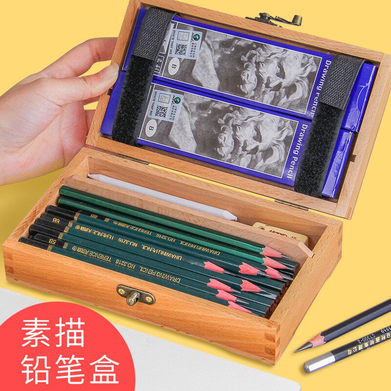 Fine Arts Students Special Solid Wood Sketch Pencil Lead Pencil Case Wood Fine Art Containing Box Multifunction Wooden Fine Arts Raw Pencil Case male and female children Art Candidates Retro Lead Pencil Case Stationery Containing box