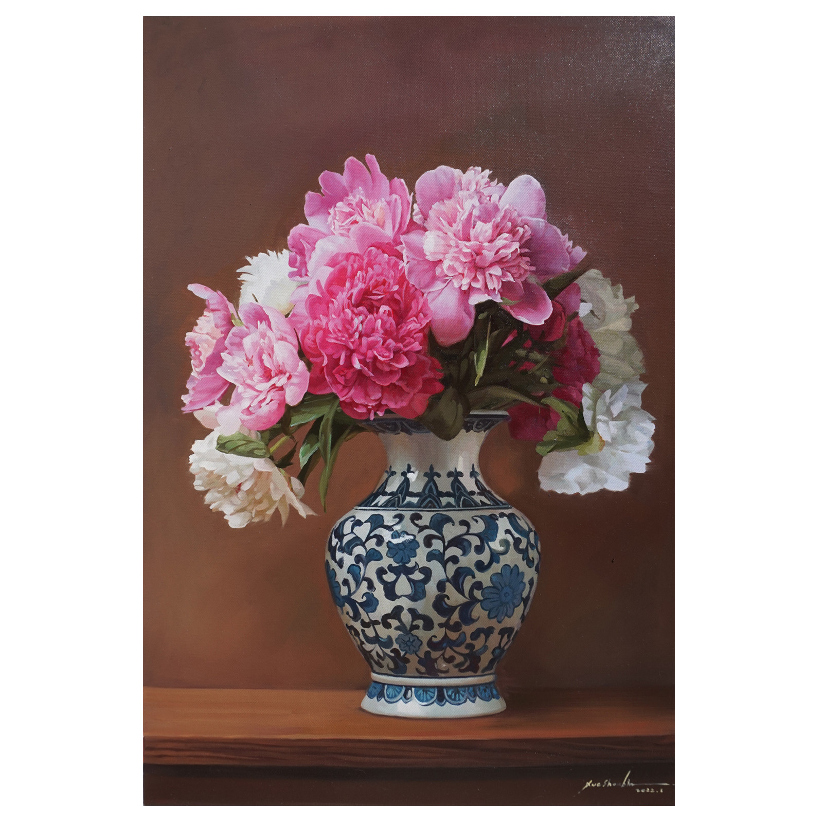 Xue Shoubin < peony Flower > Realistic Cloth Surface Oil Painting Living Room bedroom Decorative Painting Collection Pure Hand Painting