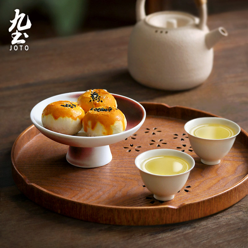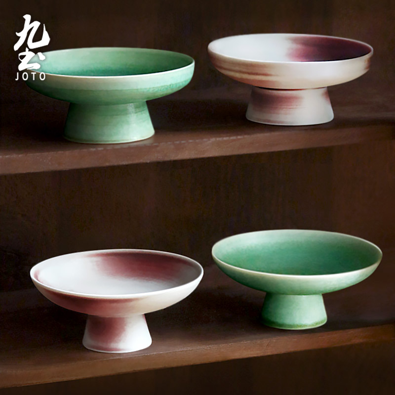 Jiutu Japanese-style ceramic high-footed plate refreshment plate fruit plate pastry snacks high-footed tray creative retro tableware home