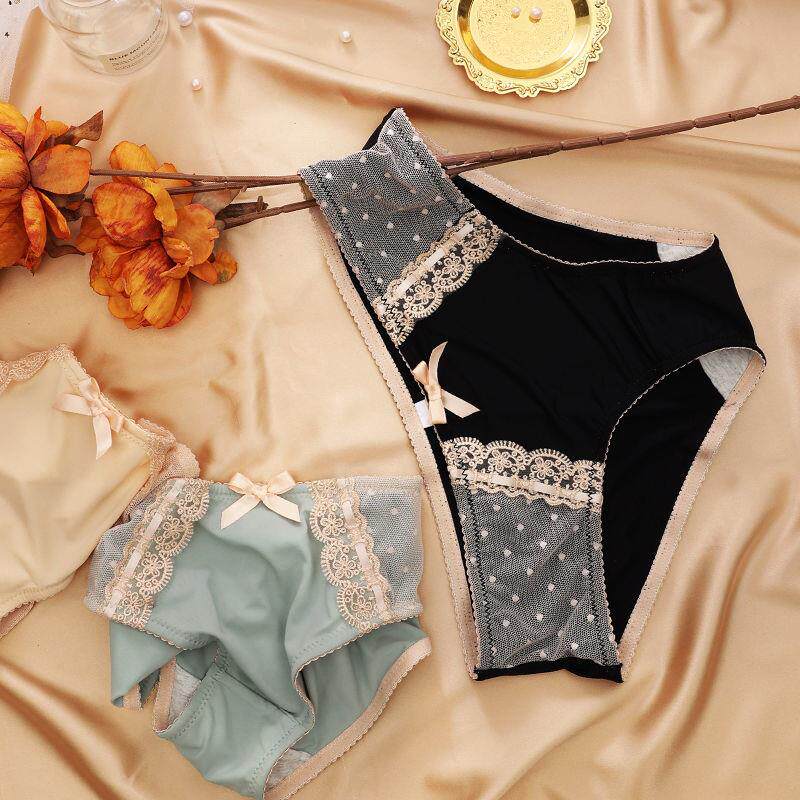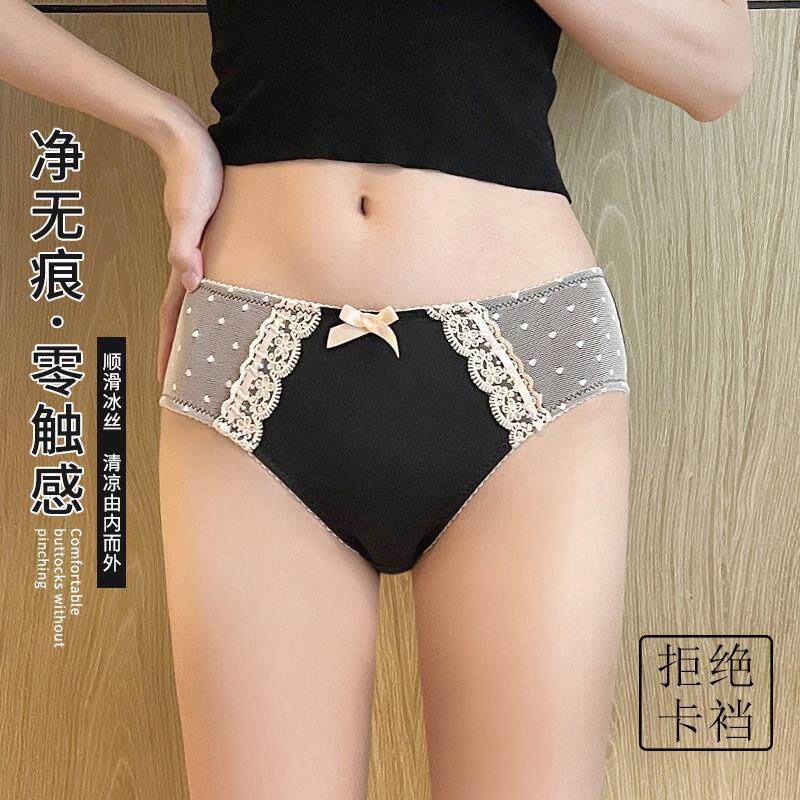 2022 summer new underwear ladies lace sexy cotton cotton crotch seamless silky butt lift big size briefs