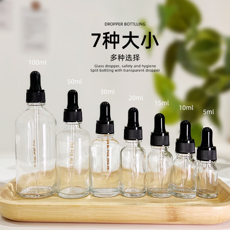 Transparent glass dropper bottle empty bottle rubber head essential oil Bottling Bottle Upscale Fine China Liquid Secondary Food Drop Bottle Small Bottle bottle