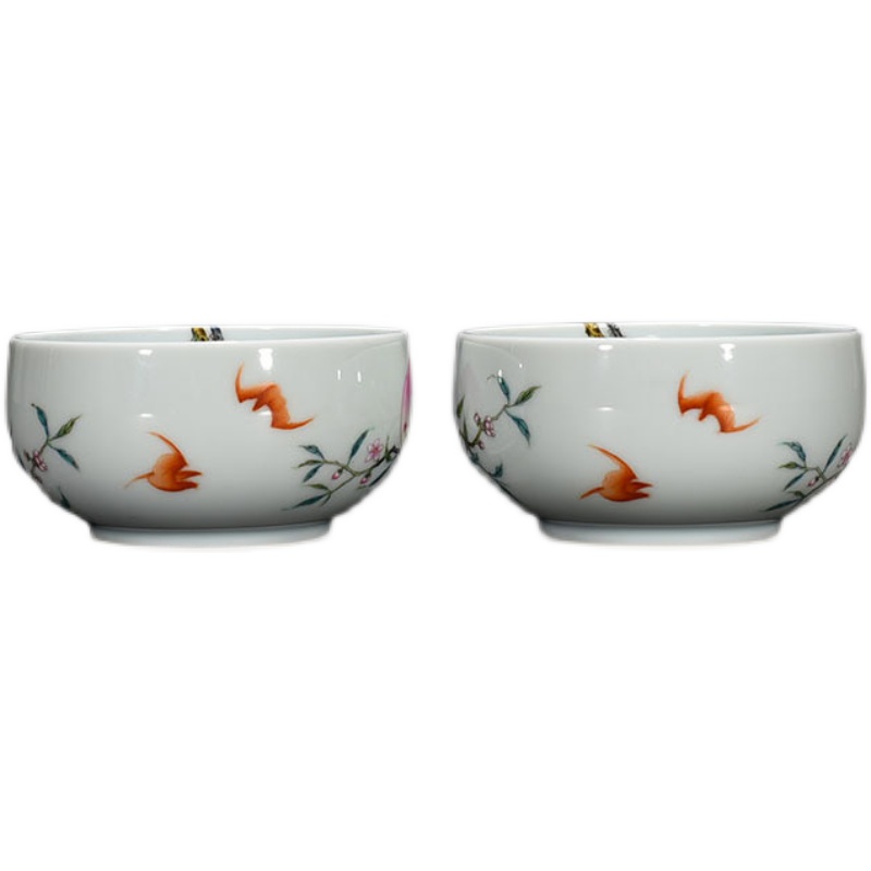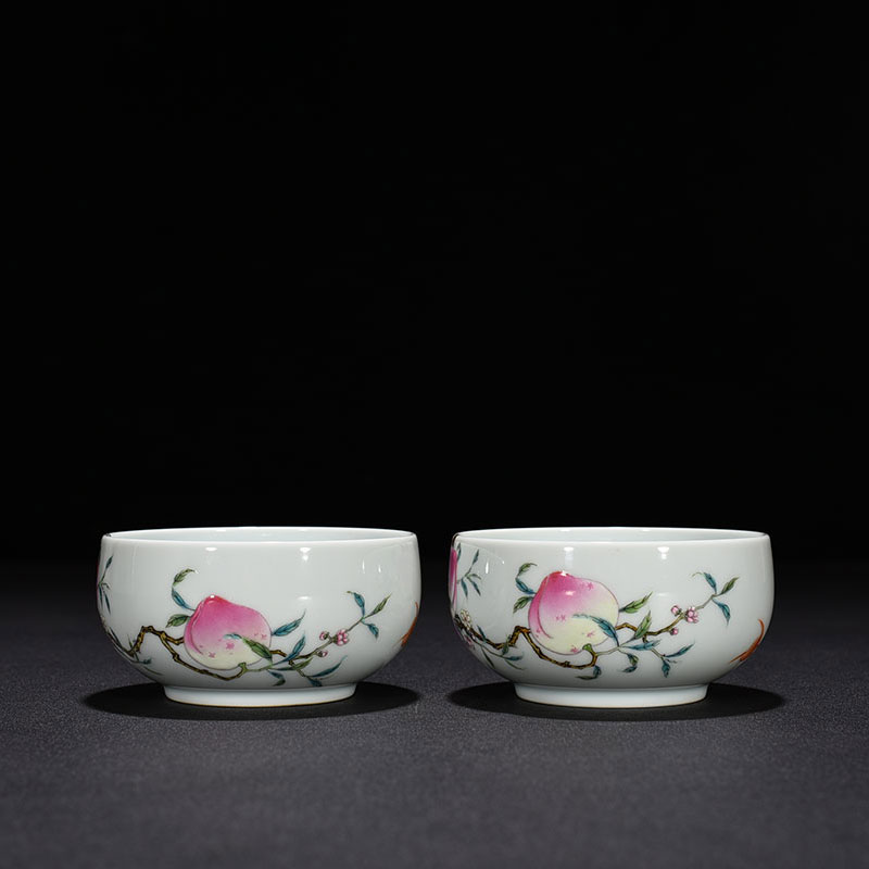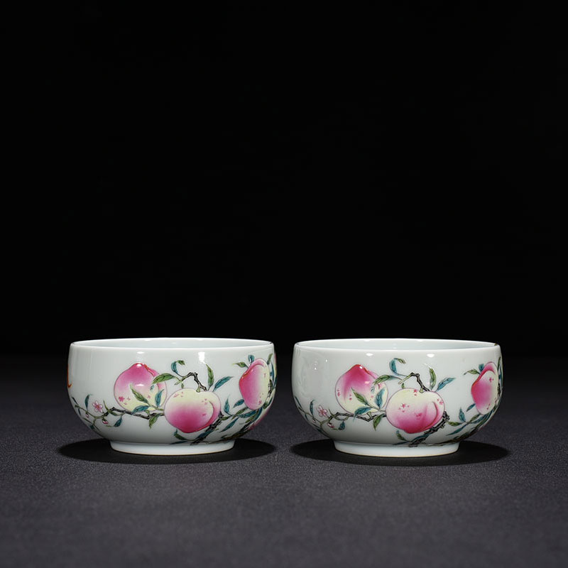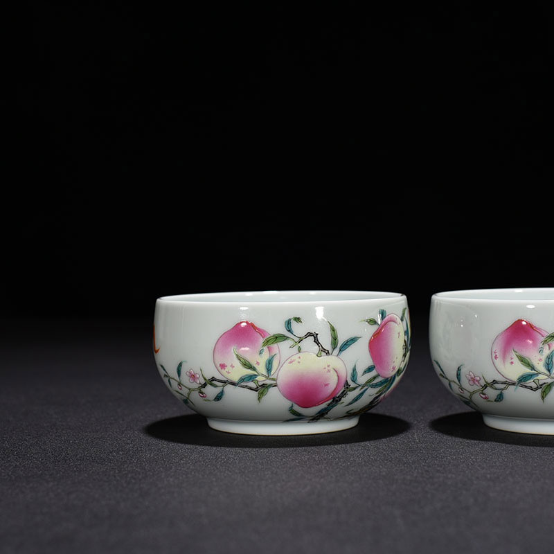 Clear Dry Lung Powder Colored Over Branches Fu Shou Nine Peach Grain Cups