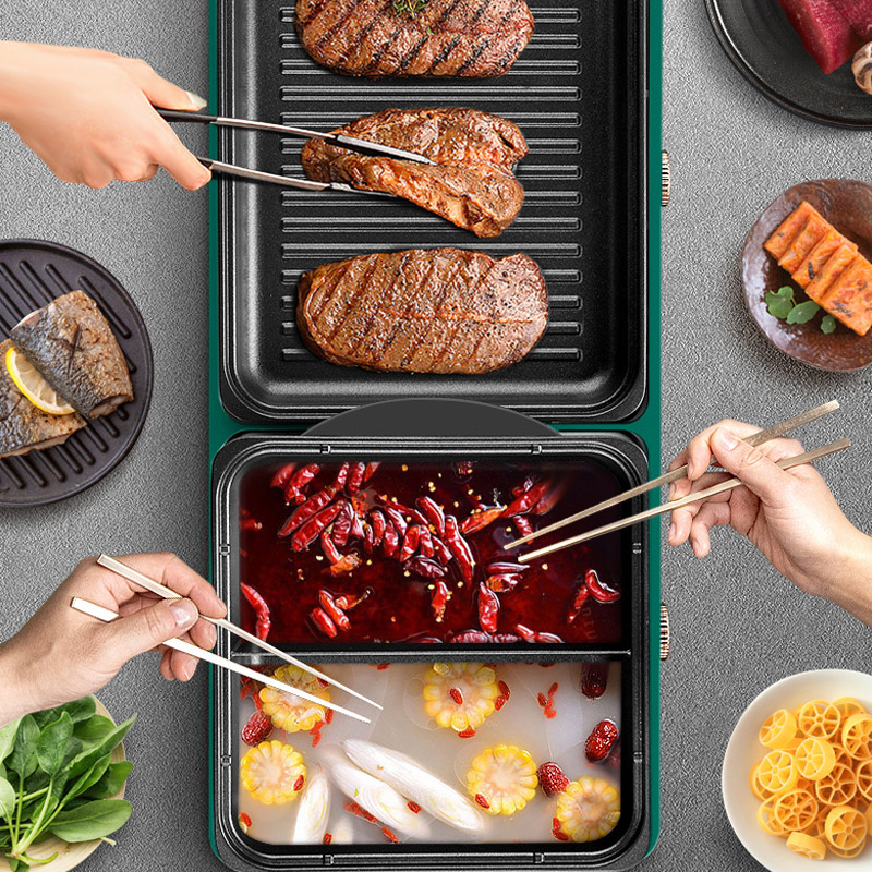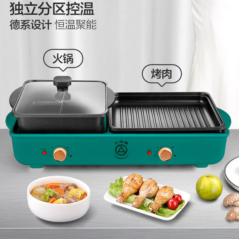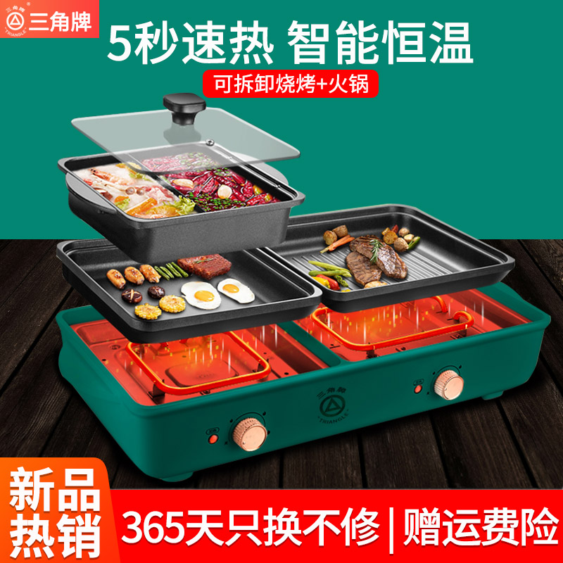 Triangle all-in-one two-piece electric hot pot barbecue two-in-one multi-function detachable smokeless barbecue electromechanical grill