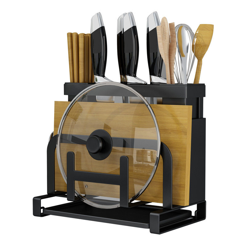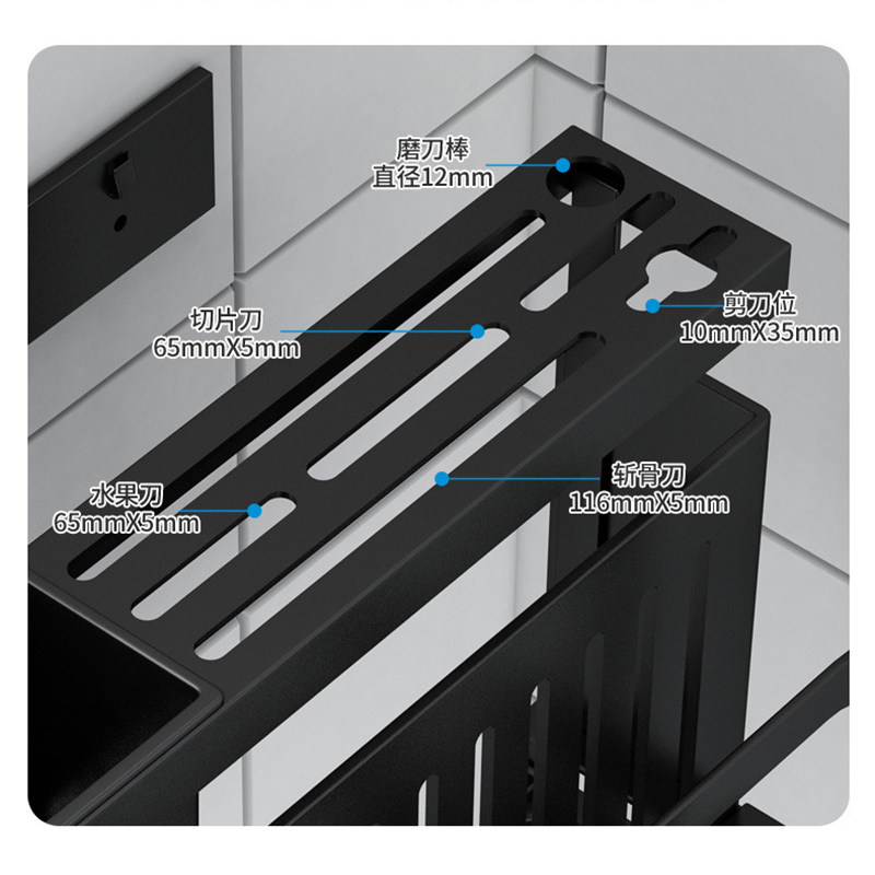 Kitchen Hanging Wall Knife Shelf Multifunctional Chopping Board lid Chopsticks Spoon containing table face Containing God black