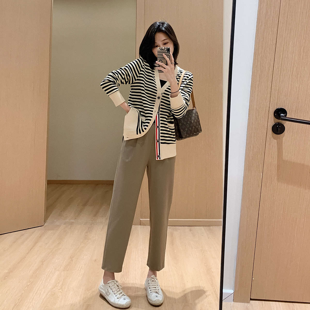 Big Bite Homemade Half Tightness Haryncey Pants Spring Summer New Pear Shaped Slim Fit Pants Loose Straight Barrel Casual Pants Woman