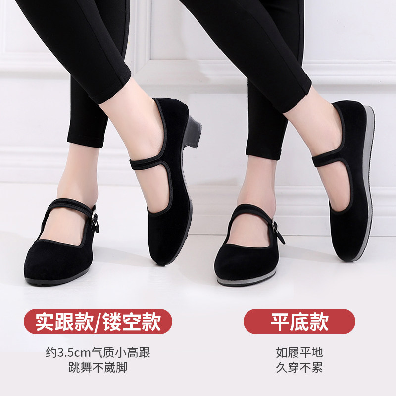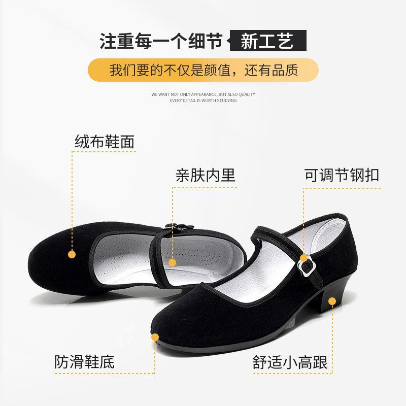 Dance heel Shoe Examination Class Special Folk Dance Band Heel Song Tibetan Glue State Northeast Ethnic Folk Cloth Shoes Black Suede Cloth-Taobao
