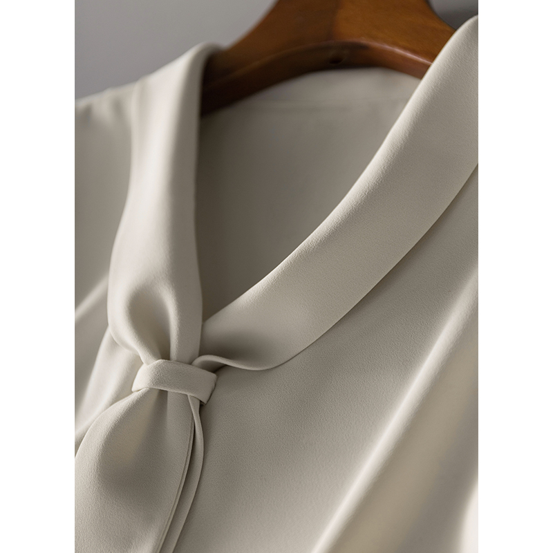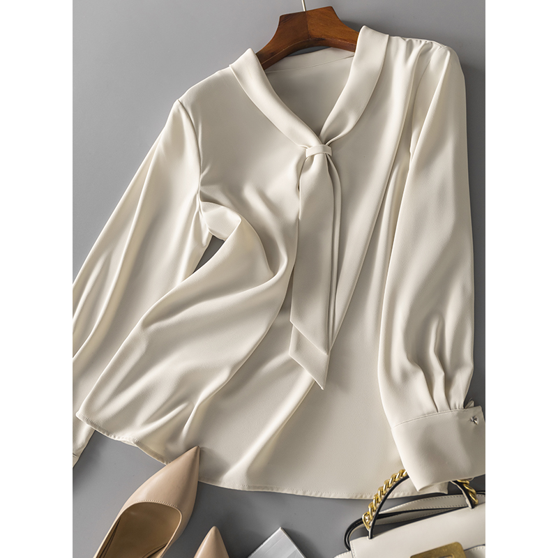 Float with V collar snowspun shirt woman 2022 spring new retro port Wind Don't make shirt Advanced sense style blouses